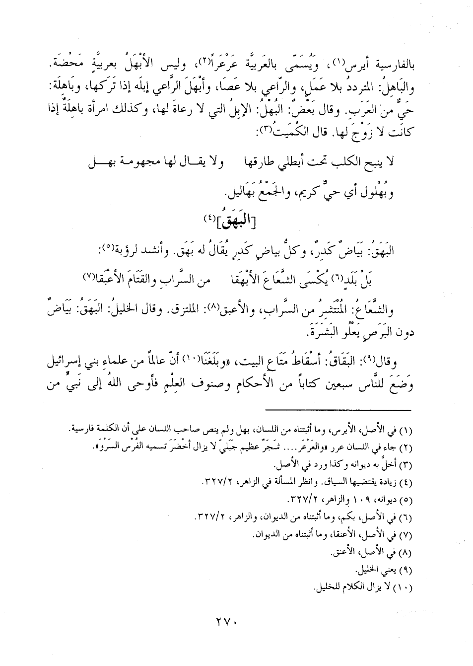 وقال: البقاقُ: أسقاطُ متاع البيت، "وبلغنا أن عالماً من علماء بني إسرائيل وضع للناس سبعين كتاباً من الأحكام وصنوف العلم فأوحى اللهُ إلى نبيٍّ من