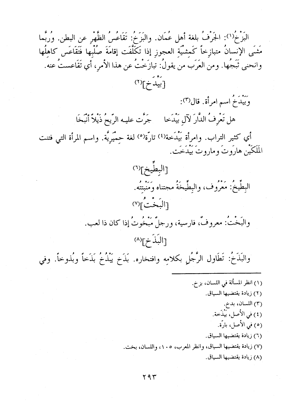 البَزْخُ" الجرفُ بلغة أهل عُمان. والبَزَخُ: تقاعُسُ الظهر عن البطن. وربما مشى الإنسان متبازخاً كمشية العجوز إذا تكلفت إقامة صلبها فتقاعس كاهلها وانحنى ثبجها. ومن العرب من يقول: تبازخْتُ عن هذا الأمر، أي تقاعست عنه.