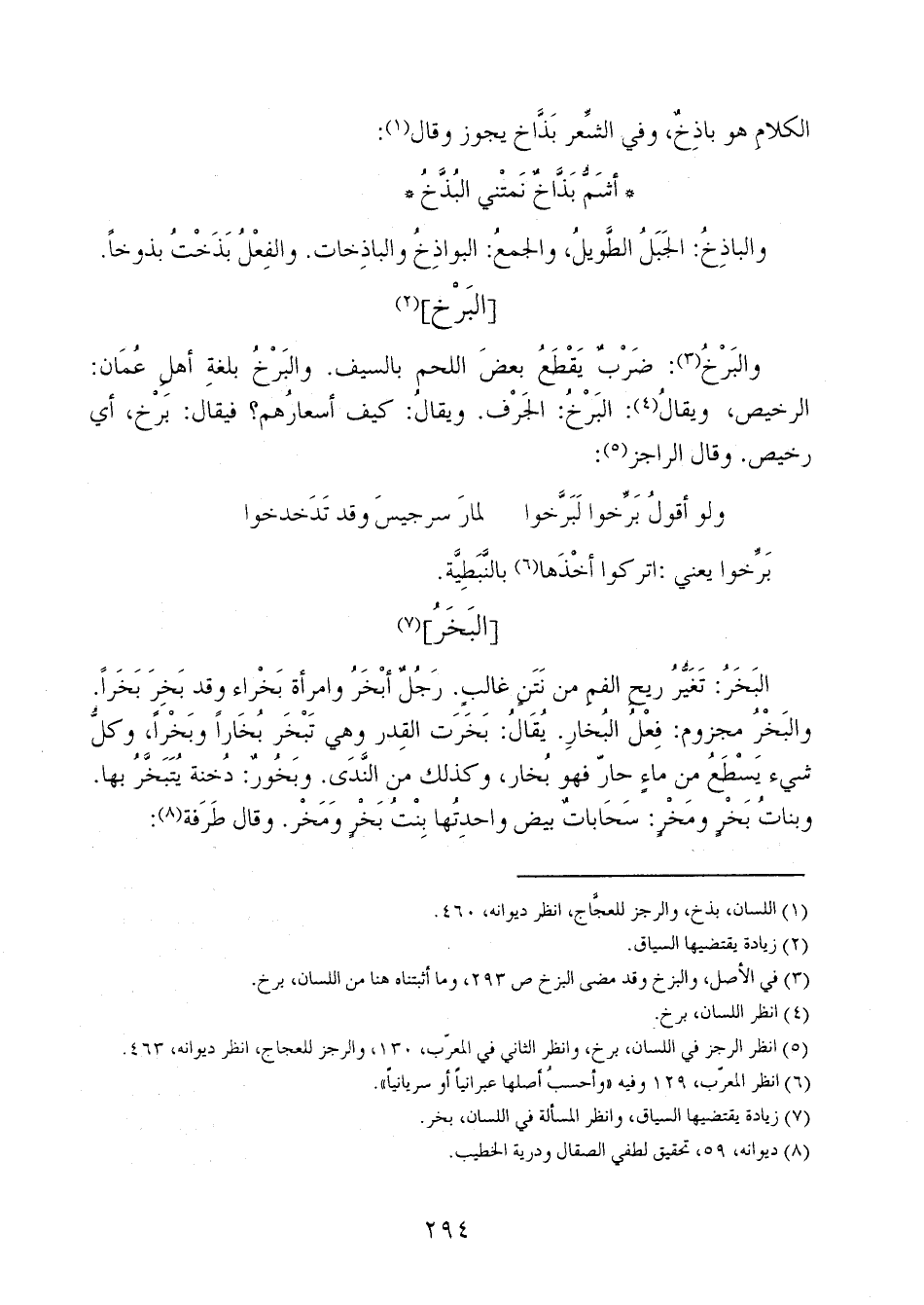 والبرْخُ: ضربٌ بقطعُ بعض اللحم بالسيف. والبرْخُ بلغة أهل عمان: الرخيص، ويقال: البَرْخُ: الجرف. ويقال: كيف أسعارهم؟ فيقال: بَرْخ، أي رخيص. وقال الراجز: