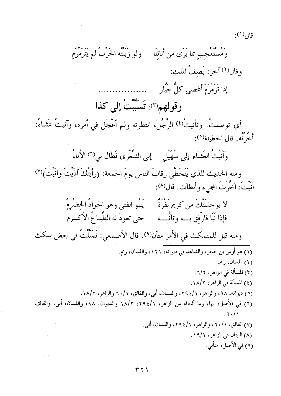 أي توصلتُ. وتأنيتُ الرجلَ، انتظرته ولم أعجل في أمره، وآنيتُ عشاء: أخرتُه. قال الحطيئة: