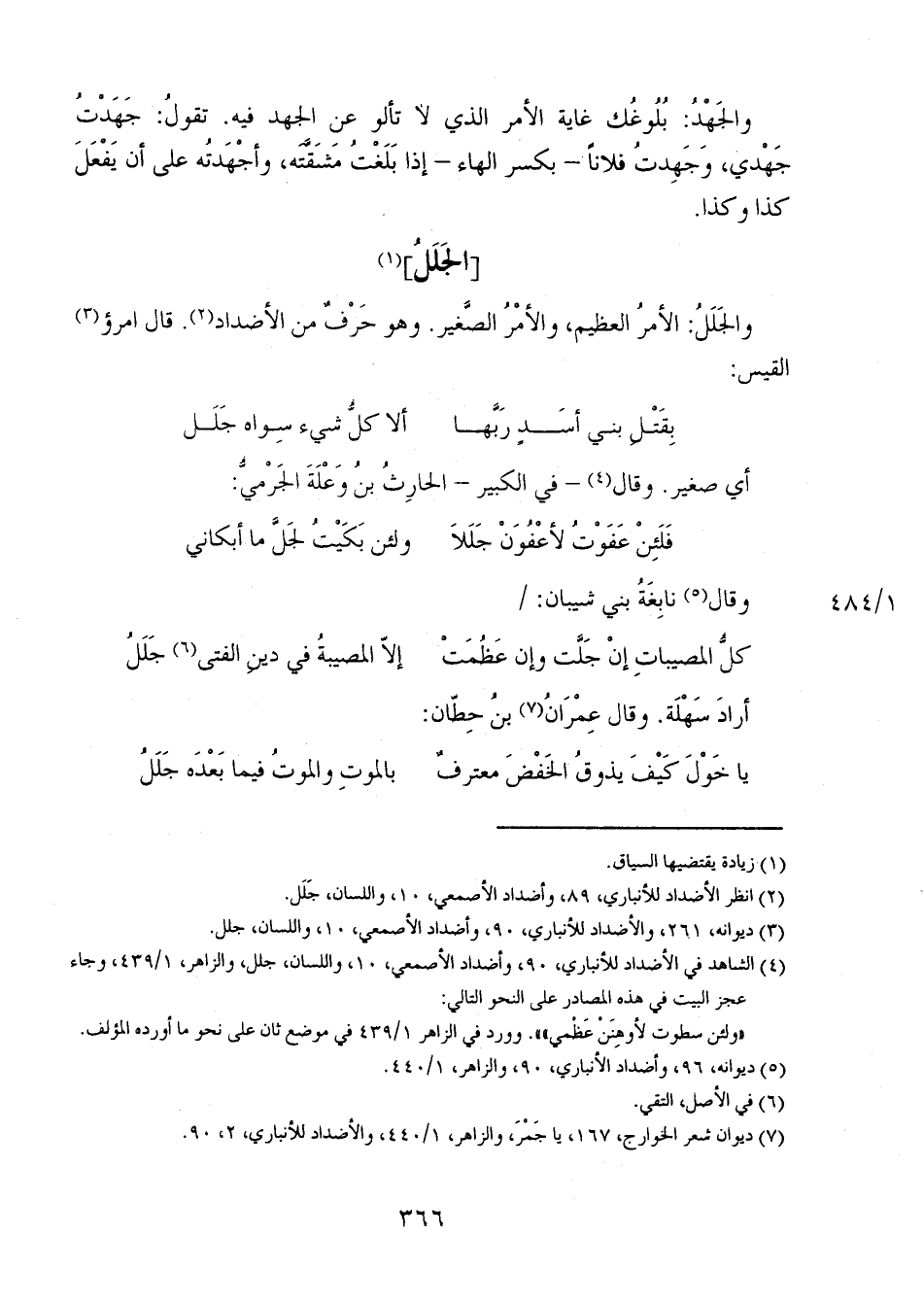 والجَلَلُ: الأمر العظيم، والأمرُ الصغير. وهو حرفٌ من الأضداد. قال امؤر القيس: