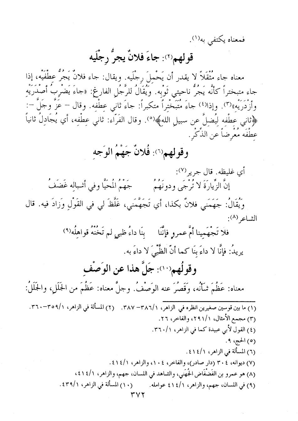 قولهم: جاء فلانٌ يجرُّ رجليه