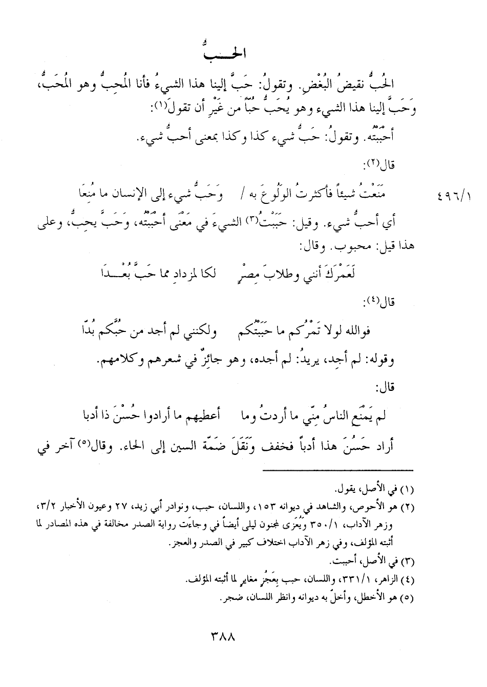 الحُبُّ نقيض البُغْضِ. وتقولُ: حَبَّ إلينا هذا الشيء فأنا المحبُّ وهو المحبُّ، وحَبَّ إلينا هذا الشيء وهو يحب حباً من غير أن تقول: