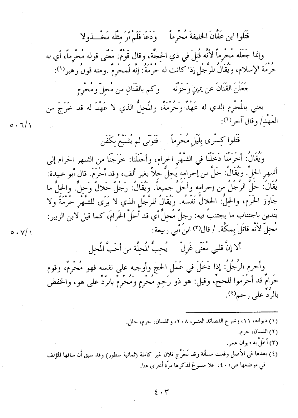 يعني بالمحرم الذي له عهدٌ وحرمةٌ، والمحل الذي لا عهد له قد خرج من العهد 1/ 506 وقال آخر: