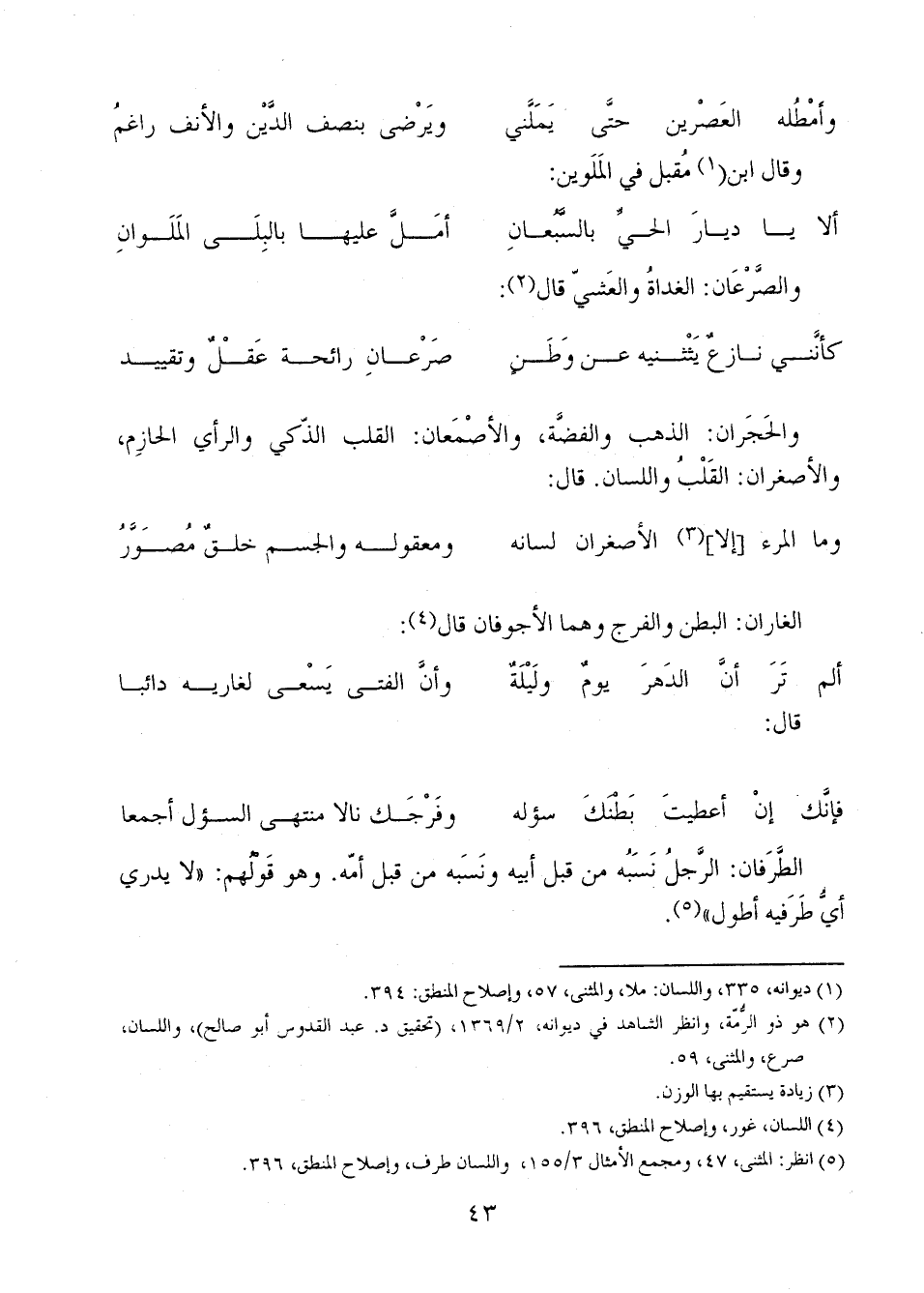 وما المرء [إلا] الأصغران لسانه ... ومعقوله والجسم خلقٌ مصور