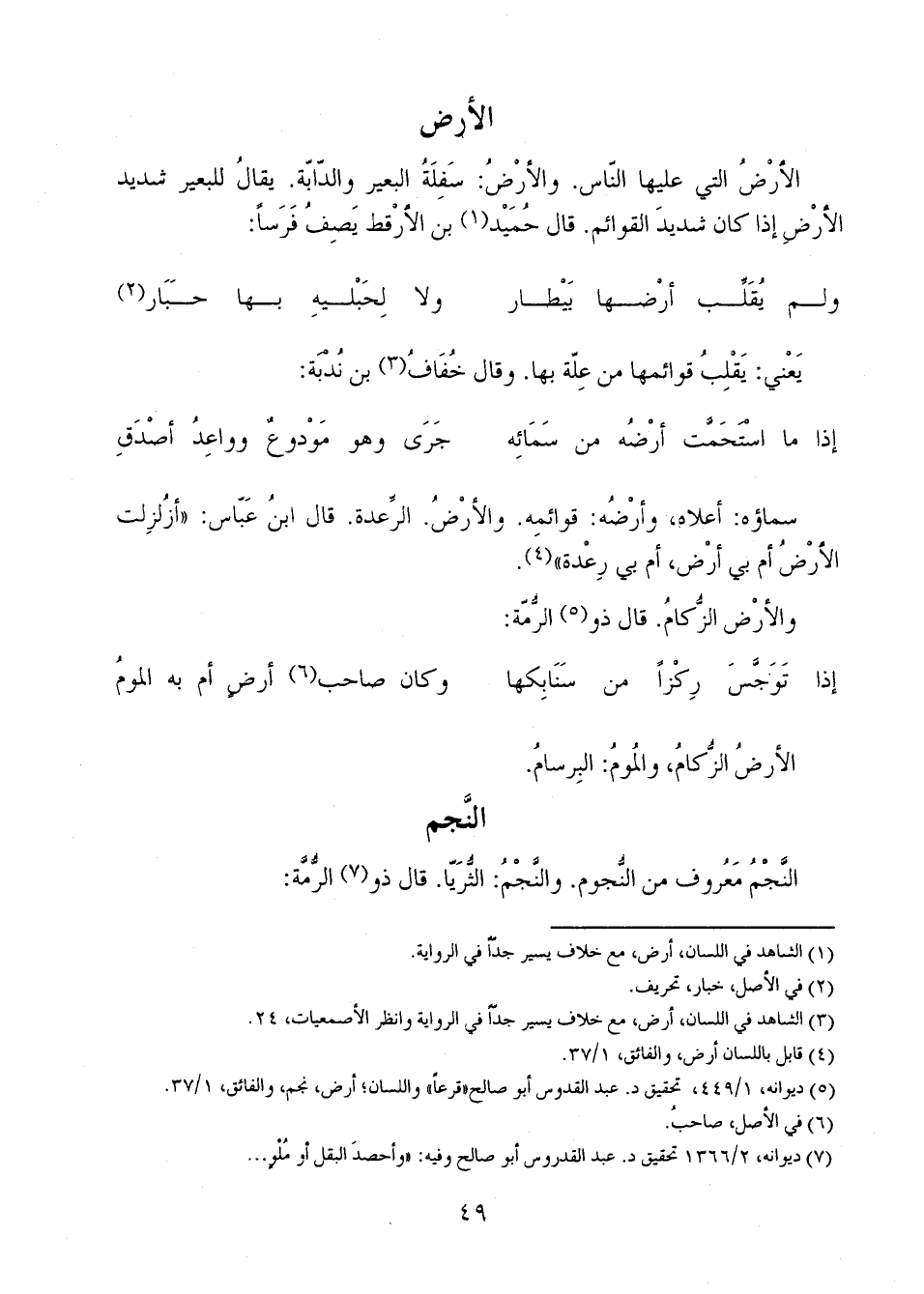 الأرضُ التي عليها الناس. والأرض: سَفِلَةُ البعير والدابة. يقال للبعير شديد الأرض إذا كان شديد القوائم. قال حُميد بن الأرقط يصفُ فرساً: