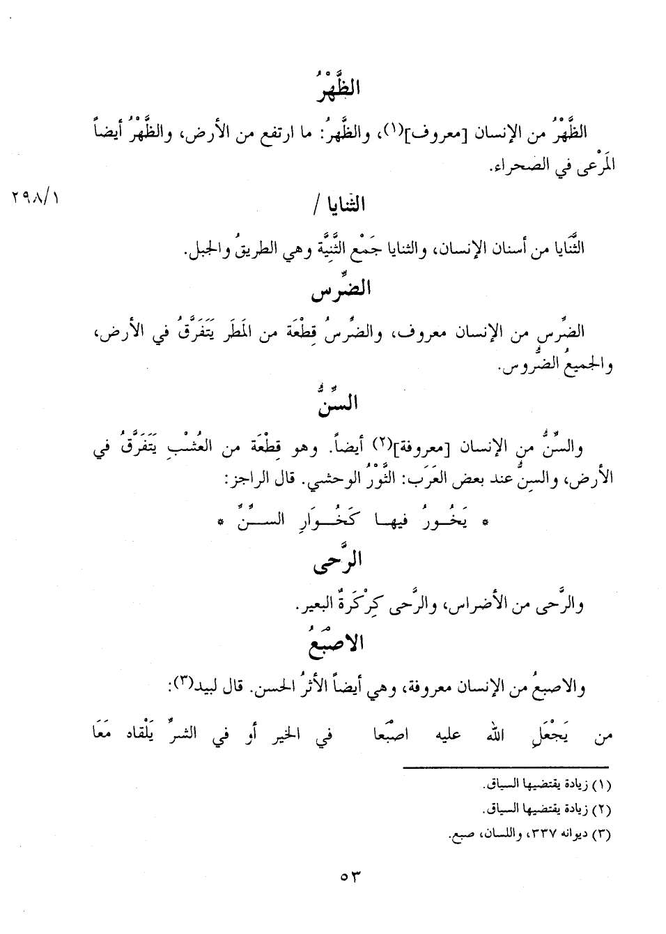 الظهر من الإنسان [معروف]، والظهرُ: ما ارتفع من الأرض، والظهرُ أيضاً المرعى في الصحراء.