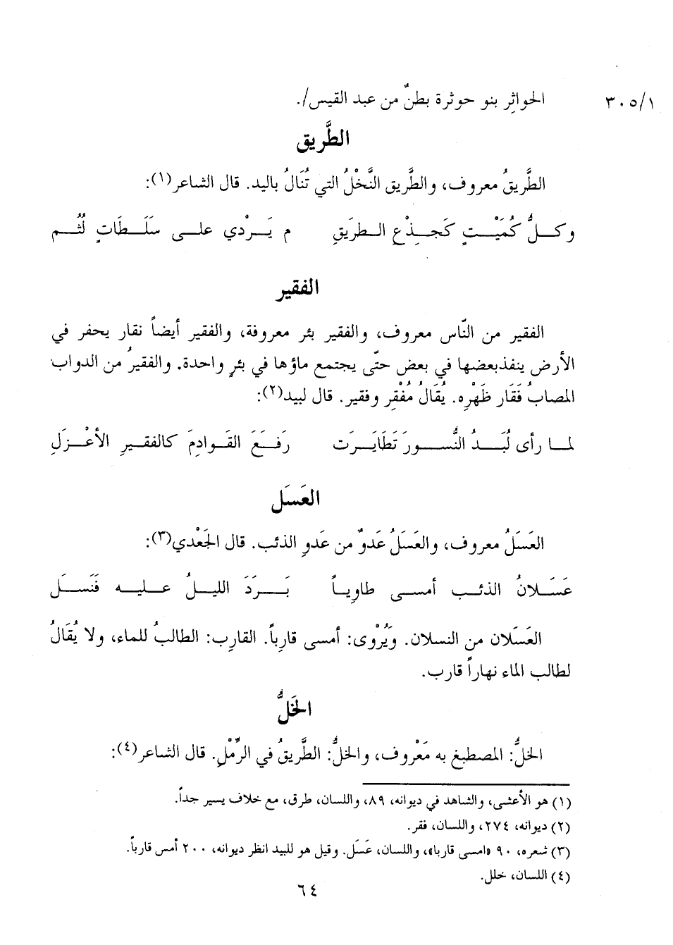 العسلان من النسلان. ويرو: أمسى قارباً. القارب: الطالب للماء، ولا يقال لطالب الماء نهاراً قارب.