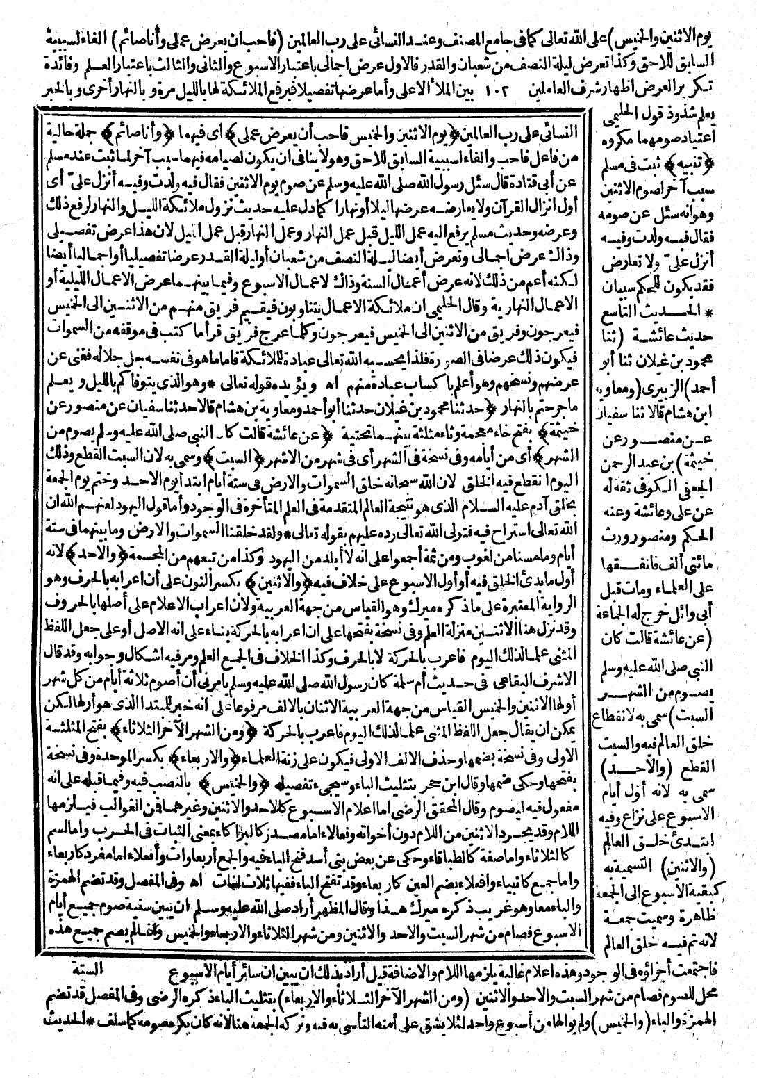 (حَدَّثَنَا مَحْمُودُ بْنُ غَيْلَانَ حَدَّثَنَا أَبُو أَحْمَدَ وَمُعَاوِيَةُ بْنُ هِشَامٍ قَالَا: حَدَّثَنَا سُفْيَانُ عَنْ مَنْصُورٍ عَنْ خَيْثَمَةَ) بِفَتْحِ خَاءٍ مُعْجَمَةٍ وَثَاءٍ مُثَلَّثَةٍ بَيْنَهُمَا تَحْتِيَّةٌ (عَنْ عَائِشَةَ قَالَتْ: كَانَ النَّبِيُّ - صَلَّى اللَّهُ عَلَيْهِ وَسَلَّمَ - يَصُومُ مِنَ الشَّهْرِ) أَيْ: مِنْ أَيَّامِهِ، وَفِي نُسْخَةٍ فِي الشَّهْرِ أَيْ: فِي شَهْرٍ مِنَ الْأَشْهُرِ (السَّبْتَ) ، وَسُمِّيَ بِهِ ; لِأَنَّ السَّبْتَ الْقَطْعُ وَذَلِكَ الْيَوْمُ انْقَطَعَ فِيهِ الْخَلْقُ ; لِأَنَّ اللَّهَ سُبْحَانَهُ خَلَقَ السَّمَاوَاتِ وَالْأَرْضَ فِي سِتَّةِ أَيَّامٍ ابْتَدَأَ يَوْمَ الْأَحَدِ، وَخَتَمَ يَوْمَ الْجُمُعَةِ بِخَلْقِ آدَمَ عَلَيْهِ السَّلَامُ الَّذِي هُوَ نَتِيجَةُ الْعَالَمِ الْمُتَقَدِّمَةُ فِي الْعِلْمِ الْمُتَأَخِّرَةُ فِي الْوُجُودِ، وَأَمَّا قَوْلُ الْيَهُودِ لَعَنَهُمُ اللَّهُ أَنَّ اللَّهَ تَعَالَى اسْتَرَاحَ فِيهِ فَتَوَلَّى اللَّهُ تَعَالَى رَدَّهُ عَلَيْهِمْ بِقَوْلِهِ تَعَالَى وَلَقَدْ خَلَقْنَا السَّمَاوَاتِ وَالْأَرْضَ وَمَا بَيْنَهُمَا فِي سِتَّةِ أَيَّامٍ وَمَا مَسَّنَا مِنْ لُغُوبٍ وَمِنْ ثَمَّةَ أَجْمَعُوا عَلَى أَنَّهُ لَا أَبْلَدَ مِنَ الْيَهُودِ وَكَذَا مَنْ تَبِعَهُمْ مِنَ الْمُجَسِّمَةِ (وَالْأَحَدُ) ; لِأَنَّهُ أَوَّلُ مَا بَدَأَ الْخَلْقَ فِيهِ أَوْ أَوَّلُ الْأُسْبُوعِ عَلَى خِلَافٍ فِيهِ (وَالِاثْنَيْنِ) بِكَسْرِ النُّونِ عَلَى أَنَّ إِعْرَابَهُ بِالْحَرْفِ، وَهُوَ الرِّوَايَةُ الْمُعْتَبَرَةُ عَلَى مَا ذَكَرَهُ مِيرَكُ، وَهُوَ الْقِيَاسُ مِنْ جِهَةِ الْعَرَبِيَّةِ، وَلِأَنَّ إِعْرَابَهُ بِالْحَرَكَةِ بِنَاءً عَلَى أَنَّهُ الْأَصْلُ أَوْ عَلَى جَعْلِ اللَّفْظِ الْمُثَنَّى عَلَمًا لِذَلِكَ الْيَوْمِ فَأُعْرِبَ بِالْحَرَكَةِ لَا بِالْحَرْفِ، وَكَذَا الْخِلَافُ فِي الْجَمْعِ الْعَلَمِ، وَمَرَّ فِيهِ إِشْكَالٌ وَجَوَابُهُ، وَقَدْ قَالَ: الْأَشْرَفُ الْبِقَاعِيُّ فِي حَدِيثِ أُمِّ سَلَمَةَ كَانَ رَسُولُ - صَلَّى اللَّهُ عَلَيْهِ وَسَلَّمَ - يَأْمُرُنِي أَنْ أَصُومَ ثَلَاثَةَ أَيَّامٍ مِنْ كُلِّ شَهْرٍ أَوَّلُهَا الِاثْنَيْنِ وَالْخَمِيسِ، الْقِيَاسُ مِنْ جِهَةِ الْعَرَبِيَّةِ الِاثْنَانِ بِالْأَلِفِ مَرْفُوعًا عَلَى أَنَّهُ خَبَرٌ