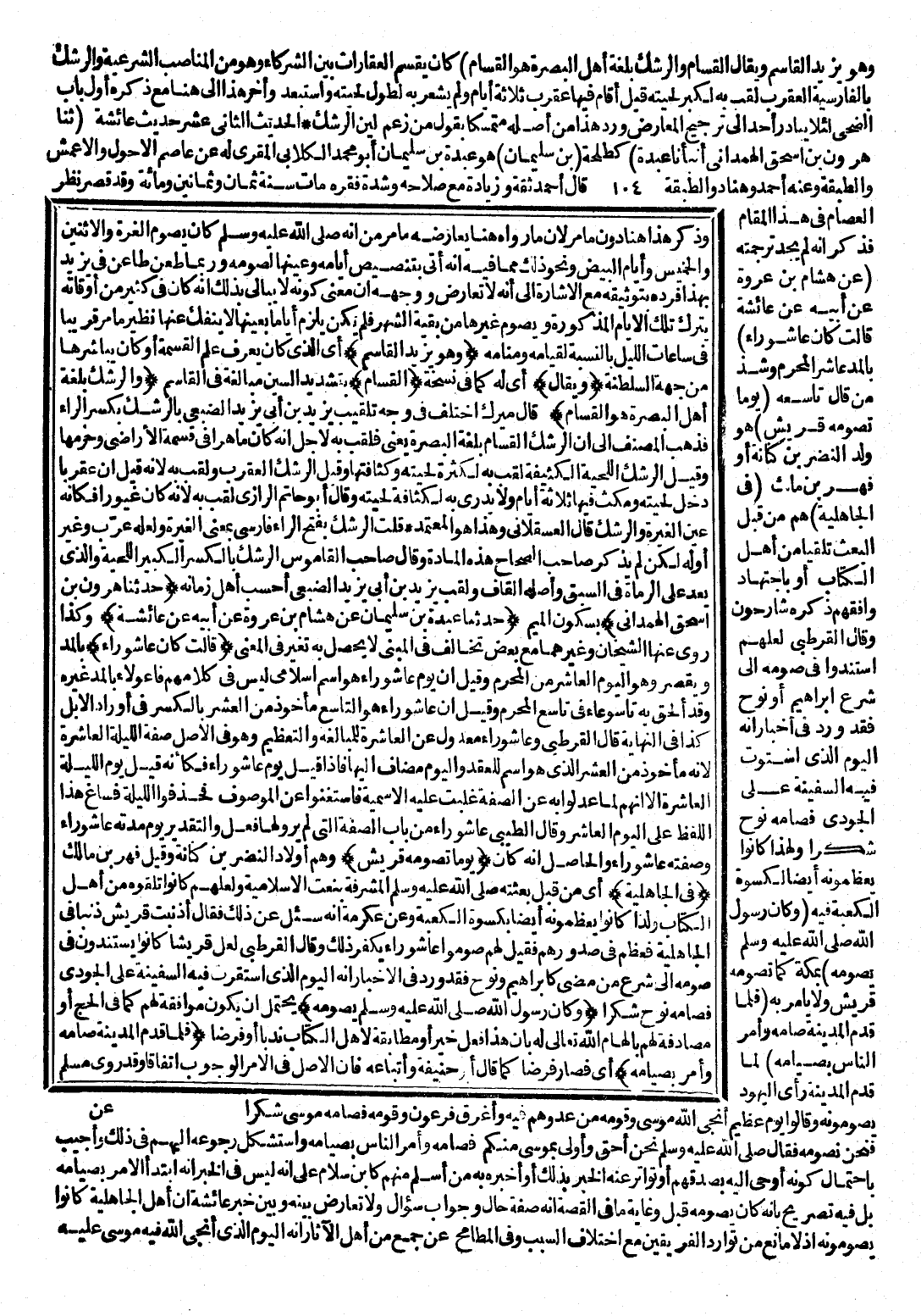 وَذَكَرَ هَذَا هُنَا دُونَ مَا مَرَّ ; لِأَنَّ مَا رَوَاهُ هُنَا يُعَارِضُهُ مَا مَرَّ مِنْ أَنَّهُ - صَلَّى اللَّهُ عَلَيْهِ وَسَلَّمَ - كَانَ يَصُومُ الْغُرَّةَ وَالِاثْنَيْنِ وَالْخَمِيسَ وَأَيَّامَ الْبِيضِ، وَنَحْوَ ذَلِكَ مِمَّا فِيهِ أَنَّهُ أَتَى بِتَنْصِيصِ أَيَّامِهِ، وَعَيَّنَهَا لِصَوْمِهِ، وَرُبَّمَا طَعَنَ طَاعِنٌ فِي يَزِيدَ بِهَذَا فَرَدَّهُ بِتَوْثِيقِهِ مَعَ الْإِرْشَادِ عَلَى أَنَّهُ لَا تَعَارُضَ، وَوَجْهُهُ أَنَّ مَعْنَى كَوْنِهِ لَا يُبَالِي بِذَلِكَ أَنَّهُ كَانَ فِي كَثِيرٍ مِنْ أَوْقَاتِهِ يَتْرُكُ تِلْكَ الْأَيَّامَ الْمَذْكُورَةَ، وَيَصُومُ غَيْرَهَا مِنْ بَقِيَّةِ الشَّهْرِ فَلَمْ يَكُنْ يُلَازِمُ أَيَّامًا بِعَيْنِهَا لَا يَنْفَكَّ عَنْهَا نَظِيرُ مَا مَرَّ قَرِيبًا فِي سَاعَاتِ اللَّيْلِ بِالنِّسْبَةِ لِقِيَامِهِ، وَمَنَامِهِ (وَهُوَ يَزِيدُ الْقَاسِمُ) أَيِ الَّذِي كَانَ يَعْرِفُ عِلْمَ الْقِسْمَةِ أَوْ كَانَ يُبَاشِرُهَا مِنْ جِهَةِ السَّلْطَنَةِ (وَيُقَالُ) أَيْ: لَهُ كَمَا فِي نُسْخَةٍ (الْقَسَّامُ) بِتَشْدِيدِ السِّينِ مُبَالَغَةُ الْقَاسِمِ (وَالرِّشْكُ بِلُغَةِ أَهْلِ الْبَصْرَةِ هُوَ الْقَسَّامُ) قَالَ مِيرَكُ: اخْتُلِفَ فِي وَجْهِ تَلْقِيبِ يَزِيدَ الضُّبَعِيِّ بِالرِّشْكِ بِكَسْرِ الرَّاءِ فَذَهَبَ الْمُصَنِّفُ إِلَى أَنَّ الرِّشْكَ الْقَسَّامُ بِلُغَةِ الْبَصْرَةِ يَعْنِي بِهِ لِأَجْلِ أَنَّهُ كَانَ مَاهِرًا فِي