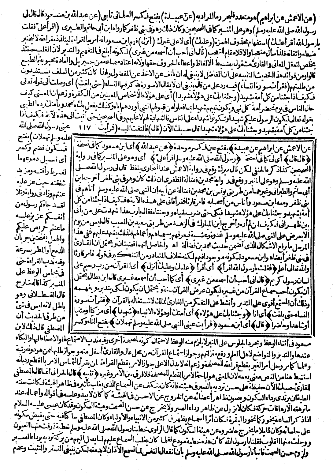 (فَقُلْتُ: يَا رَسُولَ اللَّهِ أَقْرَأُ) أَيْ: وَأَقْرَأُ (عَلَيْكَ وَعَلَيْكَ أُنْزِلَ) أَيِ: الْقُرْآنُ مِنْ رَبٍّ رَحِيمٍ عَلَى لِسَانِ رَسُولٍ كَرِيمٍ (قَالَ: إِنِّي أُحِبُّ أَنْ أَسْمَعَهُ مِنْ غَيْرِي) أَيْ: كَمَا أُحِبُّ أَنْ أُسْمِعَهُ غَيْرِي، قَالَ ابْنُ بَطَّالٍ: يُحْتَمَلُ أَنْ يَكُونَ أَحَبَّ سَمَاعَ الْقُرْآنِ مِنْ غَيْرِهِ لِيَكُونَ عَرْضُ الْقُرْآنِ سُنَّةً، وَيُحْتَمَلُ أَنْ يَكُونَ لِكَيْ يَتَدَبَّرَهُ، وَيَفْهَمَهُ وَذَلِكَ أَنَّ الْمُسْتَمِعَ أَقْوَى عَلَى التَّدَبُّرِ، وَأَنْشَطُ عَلَى التَّفَكُّرِ مِنَ الْقَارِئِ لِذَلِكَ لِاشْتِغَالِهِ بِالْقُرْآنِ (فَقَرَأْتُ سُورَةَ النِّسَاءِ حَتَّى بَلَغْتُ) أَيْ: أَنَا وَجِئْنَا بِكَ عَلَى هَؤُلَاءِ أَيْ: عَلَى أُمَّتِكَ أَوْ هَؤُلَاءِ الْأَنْبِيَاءِ شَهِيدًا أَيْ: مُزَكِّيًا أَوْ مُثْنِيًا أَوْ شَاهِدًا وَحَاضِرًا (قَالَ) أَيِ: ابْنُ مَسْعُودٍ (فَرَأَيْتُ عَيْنَيِ النَّبِيِّ - صَلَّى اللَّهُ عَلَيْهِ وَسَلَّمَ - تَهْمِلَانِ) بِفَتْحِ التَّاءِ وَكَسْرِ