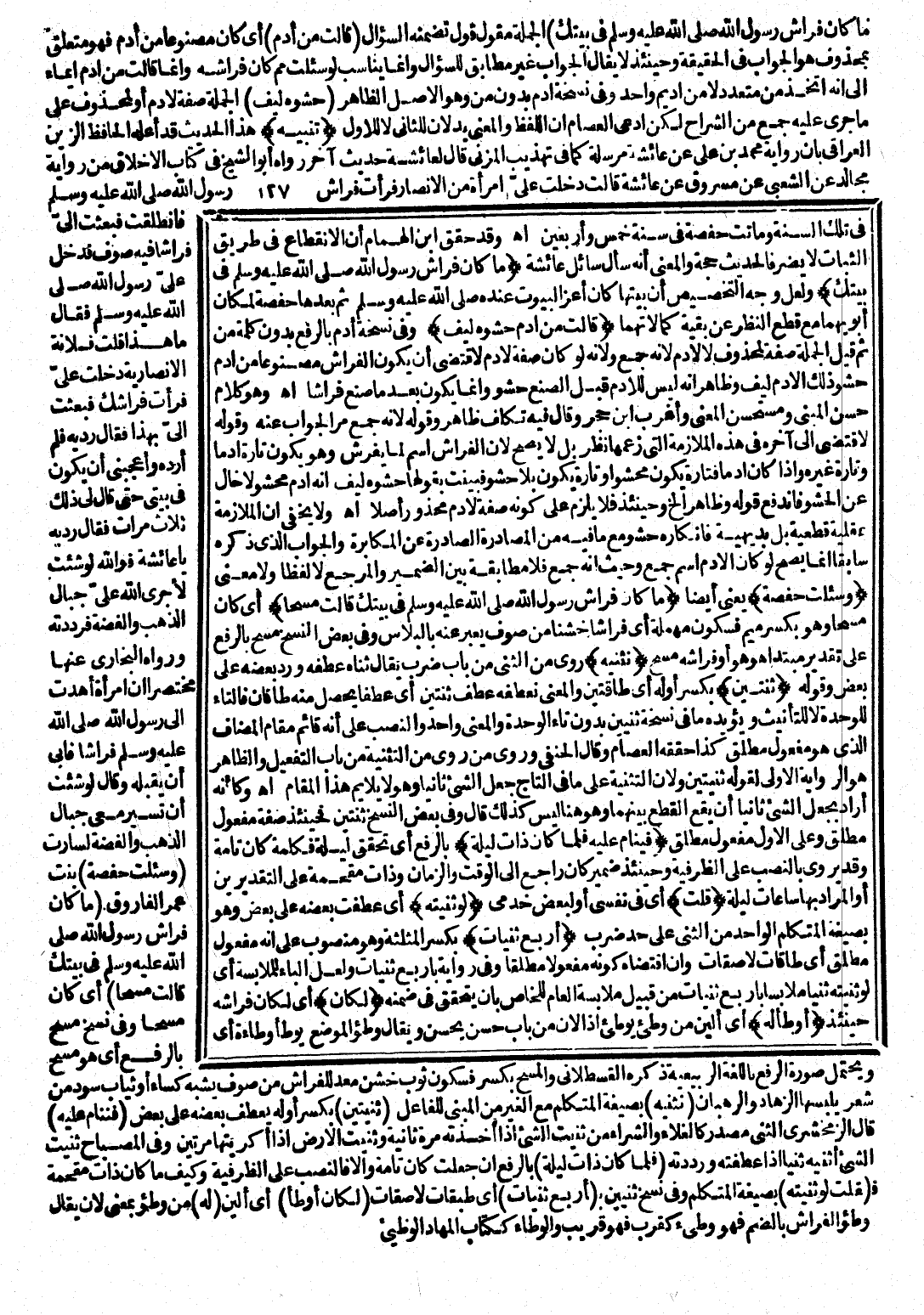 وَالْمَرْجِعِ لَا لَفْظًا، وَلَا مَعْنَى (وَسُئِلَتْ حَفْصَةُ) يَعْنِي أَيْضًا (مَا كَانَ فِرَاشُ رَسُولِ اللَّهِ - صَلَّى اللَّهُ عَلَيْهِ وَسَلَّمَ - فِي بَيْتِكَ قَالَتْ: مِسْحًا) أَيْ: كَانَ مِسْحًا، وَهُوَ بِكَسْرِ مِيمٍ فَسُكُونِ مُهْمَلَةٍ أَيْ: فِرَاشًا خَشِنًا مِنْ صُوفٍ يُعَبَّرُ عَنْهُ بِالْبِلَاسِ، وَفِي بَعْضِ النُّسَخِ مِسْحٌ بِالرَّفْعِ عَلَى تَقْدِيرِ مُبْتَدَأٍ هُوَ هُوَ أَوْ فِرَاشُهُ مِسْحٌ (ثَنَيْتُهُ) رُوِيَ مِنَ الثَّنْيِ مِنْ بَابِ ضَرَبَ يُقَالُ ثَنَاهُ عَطَفَهُ وَرَدَّ بَعْضَهُ عَلَى بَعْضٍ، وَقَوْلُهُ (ثِنْيَتَيْنِ) بِكَسْرِ أَوَّلِهِ أَيْ: طَاقَتَيْنِ، وَالْمَعْنَى نَعْطِفُهُ عَطْفَ ثِنْيَيْنِ أَيْ عَطْفًا يَحْصُلُ مِنْهُ طَاقَانِ فَالتَّاءُ لِلْوَحْدَةِ لَا لِلتَّأْنِيثِ وَيُؤَيْدِهِ مَا فِي نُسْخَةِ ثِنْتَيْنِ بِدُونِ تَاءِ الْوَحْدَةِ، وَالْمَعْنَى وَاحِدٌ، وَالنَّصْبُ عَلَى أَنَّهُ قَائِمٌ مُقَامَ الْمُضَافِ الَّذِي هُوَ مَفْعُولٌ مُطْلَقٌ كَذَا حَقَّقَهُ الْعِصَامُ.