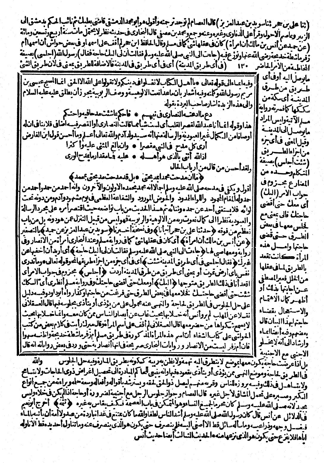(حَدَّثَنَا عَلِيُّ بْنُ حُجْرٍ أَنْبَأَنَا) وَفِي نُسْخَةٍ أَخْبَرَنَا (سُوِيدُ بْنُ عَبْدِ الْعَزِيزِ عَنْ حُمَيْدٍ) بِالتَّصْغِيرِ (عَنْ أَنَسِ بْنِ مَالِكٍ أَنَّ امْرَأَةً) أَيْ: كَانَ فِي عَقْلِهَا شَيْءٌ كَمَا فِي رِوَايَةِ مُسْلِمٍ وَعِنْدَ الْبُخَارِيِّ امْرَأَةٌ مِنَ الْأَنْصَارِ، وَفِي رِوَايَةٍ وَمَعَهَا صَبِيٌّ لَهَا (جَاءَتْ إِلَى النَّبِيِّ - صَلَّى اللَّهُ عَلَيْهِ وَسَلَّمَ - فَقَالَتْ: إِنَّ لِي إِلَيْكَ حَاجَةً) أَيْ: أُرِيدُ أَنْ أُخْفِيَهَا عَنْ غَيْرِكَ (فَقَالَ: اجْلِسِي فِي أَيِّ طَرِيقِ الْمَدِينَةِ شِئْتِ) أَيْ: فِي أَيِّ جُزْءٍ مِنْ أَجْزَاءِ طَرِيقِهَا نَحْوِ قَوْلِهِ تَعَالَى وَمَا تَدْرِي نَفْسٌ بِأَيِّ أَرْضٍ تَمُوتُ أَوْ بِمَعْنَى أَيِّ طَرِيقٍ مِنْ طُرُقِ الْمَدِينَةِ أَرَدْتِ (أَجْلِسْ) مَجْزُومٌ فِي جَوَابِ الْأَمْرِ أَيْ: أَقْعُدْ أَنَا فِي ذَلِكَ الطَّرِيقِ مُتَوَجِّهًا (إِلَيْكِ) أَوْ مَعَكِ حَتَّى أَقْضِيَ حَاجَتَكِ وَفِي رِوَايَةِ مُسْلِمٍ انْظُرِي أَيِّ السِّكَكِ شِئْتِ فَخَلَا مَعَهَا فِي بَعْضِ