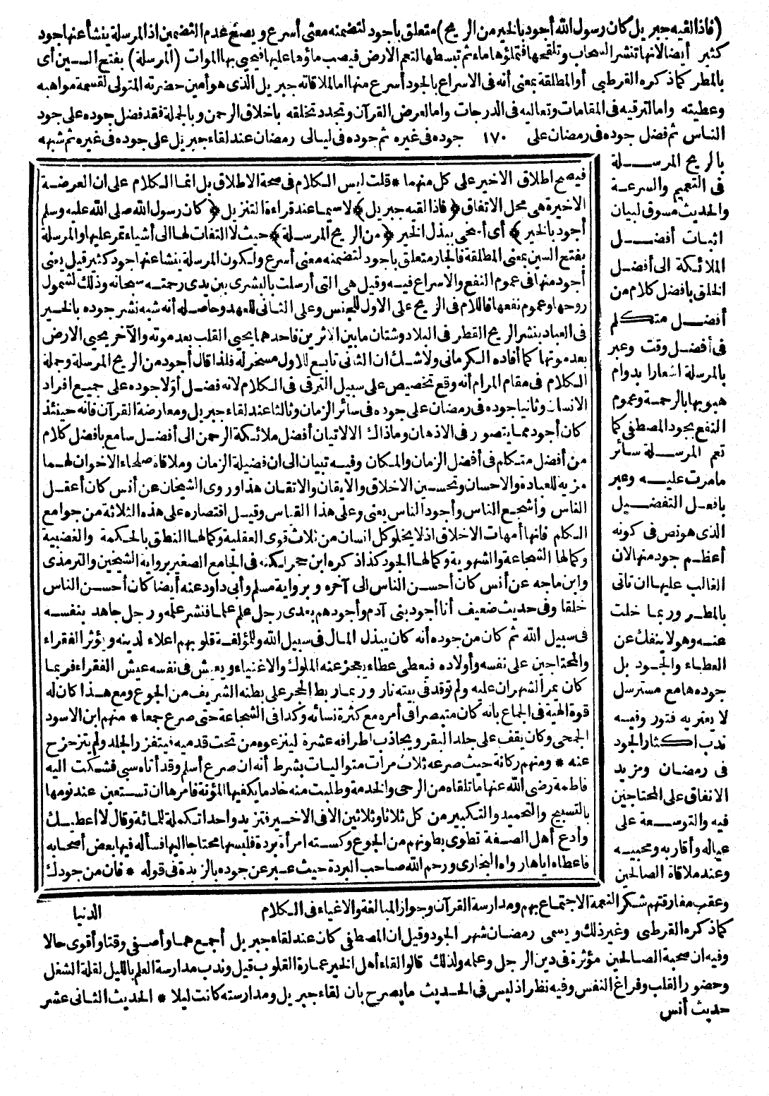 وَفِي حَدِيثٍ ضَعِيفٍ (أَنَا أَجْوَدُ بَنِي آدَمَ وَأَجْوَدُهُمْ بَعْدِي رَجُلٌ عَلِمَ عِلْمًا فَنَشَرَ عِلْمَهُ وَرَجُلٌ جَاهَدَ بِنَفْسِهِ فِي سَبِيلِ اللَّهِ.