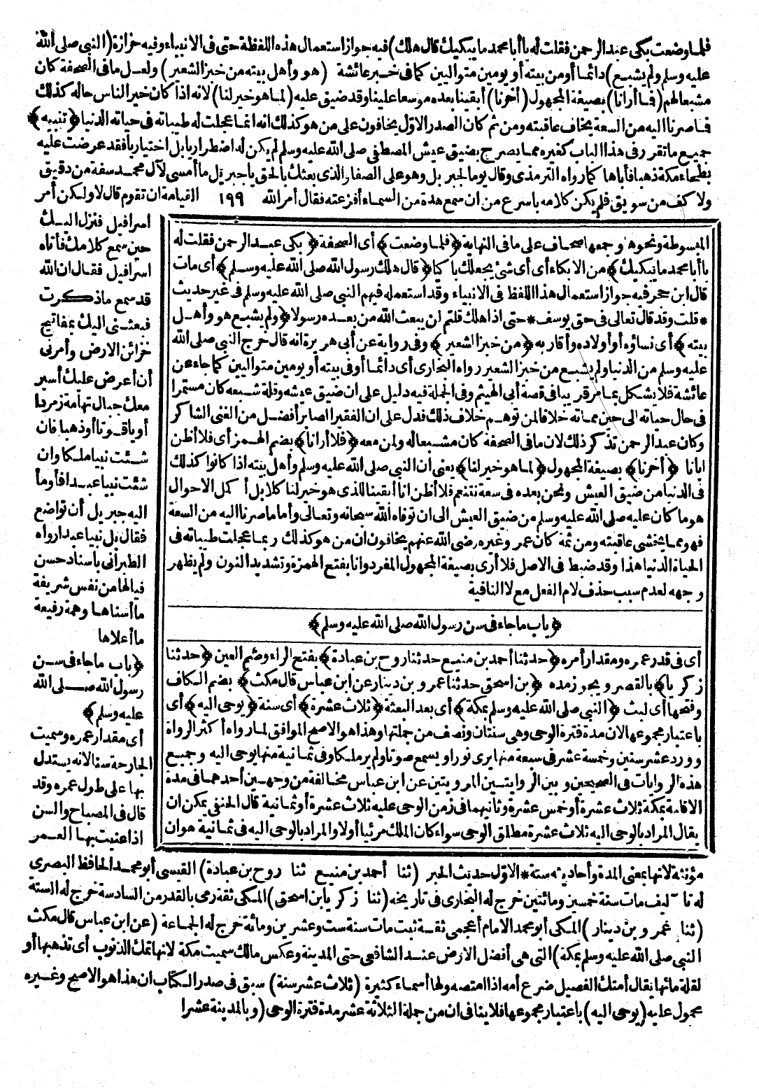 أَيْ فِي قَدْرِ عُمُرِهِ وَمِقْدَارِ أَمْرِهِ (حَدَّثَنَا أَحْمَدُ بْنُ مَنِيعٍ، حَدَّثَنَا رَوْحُ بْنُ عُبَادَةَ) بِفَتْحِ الرَّاءِ وَضَمِّ الْعَيْنِ (حَدَّثَنَا زَكَرِيَّا) بِالْقَصْرِ، وَيَجُوزُ مَدُّهُ (ابْنُ إِسْحَاقَ حَدَّثَنَا عَمْرُو بْنُ دِينَارٍ عَنِ ابْنِ عَبَّاسٍ قَالَ مَكَثَ) بِضَمِّ الْكَافِ وَفَتْحِهَا، أَيْ: لَبِثَ (النَّبِيُّ - صَلَّى اللَّهُ عَلَيْهِ وَسَلَّمَ - بِمَكَّةَ) أَيْ: بَعْدَ الْبَعْثَةِ (ثَلَاثَ عَشْرَةَ) أَيْ: سَنَةً (يُوحَى إِلَيْهِ) أَيْ: بِاعْتِبَارِ مَجْمُوعِهَا،؛ لِأَنَّ مُدَّةَ فَتْرَةِ الْوَحْيِ، وَهِيَ سَنَتَانِ وَنِصْفٌ مِنْ جُمْلَتِهَا، وَهَذَا هُوَ الْأَصَحُّ الْمُوَافِقُ لِمَا رَوَاهُ أَكْثَرُ الرُّوَاةِ، وَوَرَدَ عَشْرُ سِنِينَ وَخَمْسَةَ عَشَرَ فِي سَبْعَةٍ مِنْهَا يَرَى نُورًا وَيَسْمَعُ صَوْتًا وَلَمْ يَرَ مَلَكًا، وَفِي ثَمَانِيَةٍ مِنْهَا يُوحَى إِلَيْهِ، وَجَمِيعُ هَذِهِ الرِّوَايَاتِ فِي الصَّحِيحَيْنِ، وَبَيْنَ الرِّوَايَتَيْنِ الْمَرْوِيَّتَيْنِ عَنِ ابْنِ عَبَّاسٍ مُخَالَفَةٌ مِنْ وَجْهَيْنِ: أَحَدُهُمَا فِي مُدَّةِ الْإِقَامَةِ بِمَكَّةَ ثَلَاثَ عَشْرَةَ أَوْ خَمْسَ عَشْرَةَ، وَثَانِيهِمَا فِي زَمَنِ الْوَحْيِ عَلَيْهِ ثَلَاثَ عَشْرَةَ أَوْ ثَمَانِيَةٌ، قَالَ الْحَنَفِيُّ: يُمْكِنُ أَنْ يُقَالَ الْمُرَادُ بِالْوَحْيِ إِلَيْهِ فِي ثَلَاثَ عَشْرَةَ مُطْلَقُ الْوَحْيِ سَوَاءٌ كَانَ الْمَلَكُ مَرْئِيًّا أَوْ لَا، وَالْمُرَادُ: بِالْوَحْيِ إِلَيْهِ في ثمانية هُوَ أَنْ