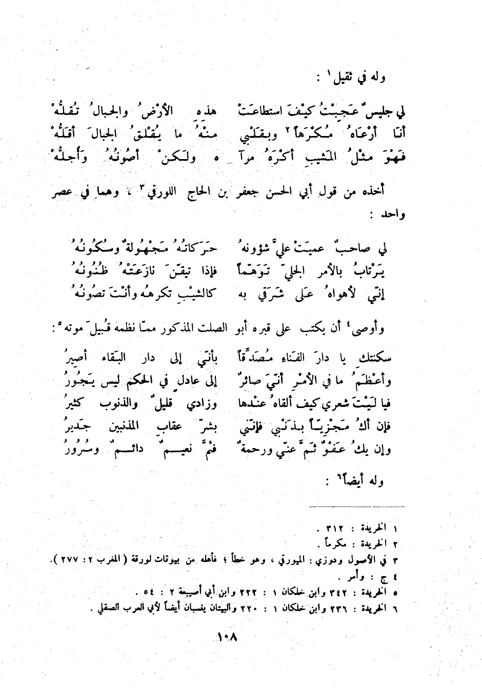 (6) الخريدة: 236 وابن خلكان 1: 220 والبيتان ينسبان أيضا لأبي العرب الصقلي.