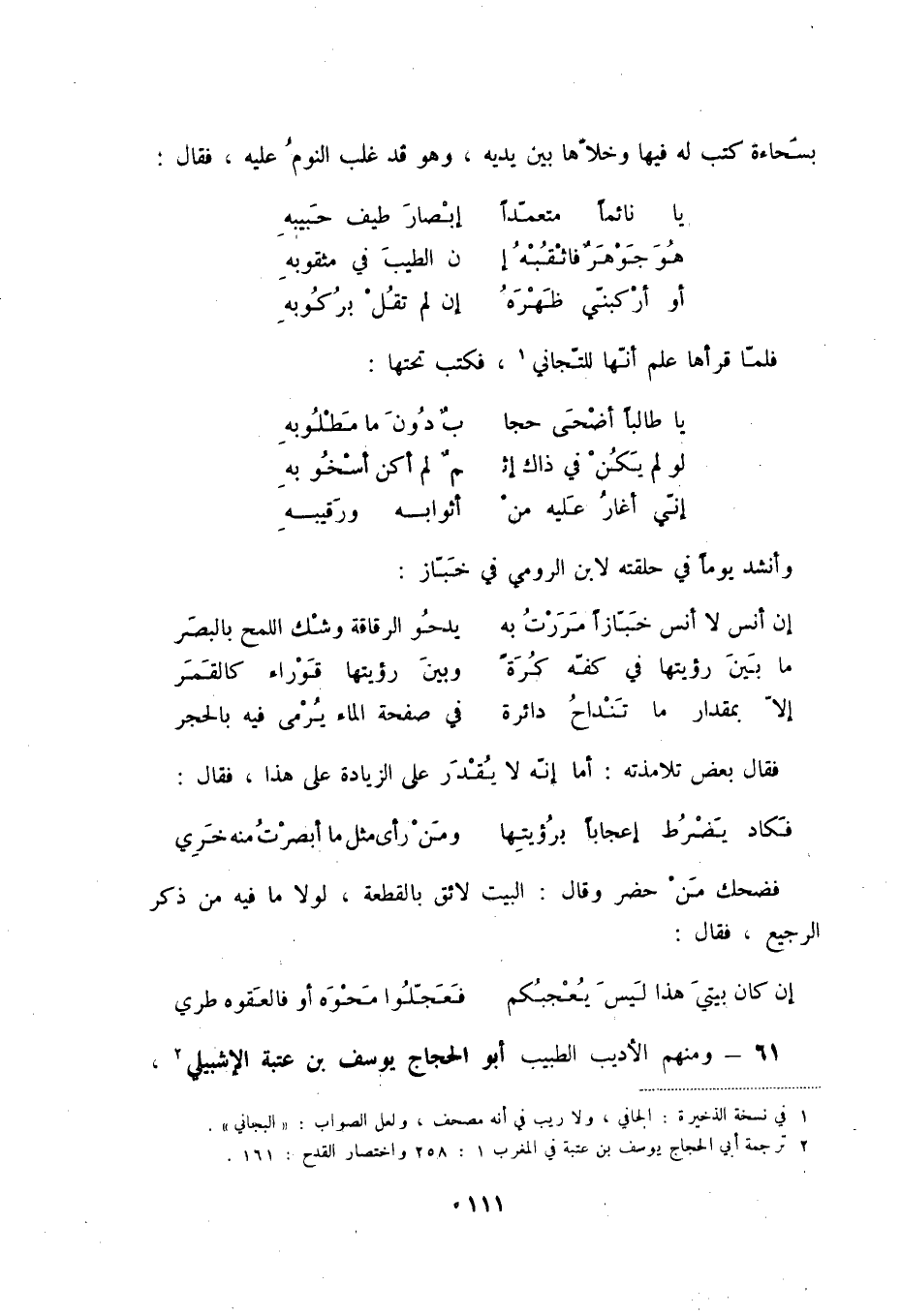 إن كان بيتي هذا ليس يعجبكم ... فعجّلوا محوه أو فالعقوه طري 61 - ومنهم الأديب الطبيب أبو الحجاج يوسف بن عتبة الإشبيلي (2) ،