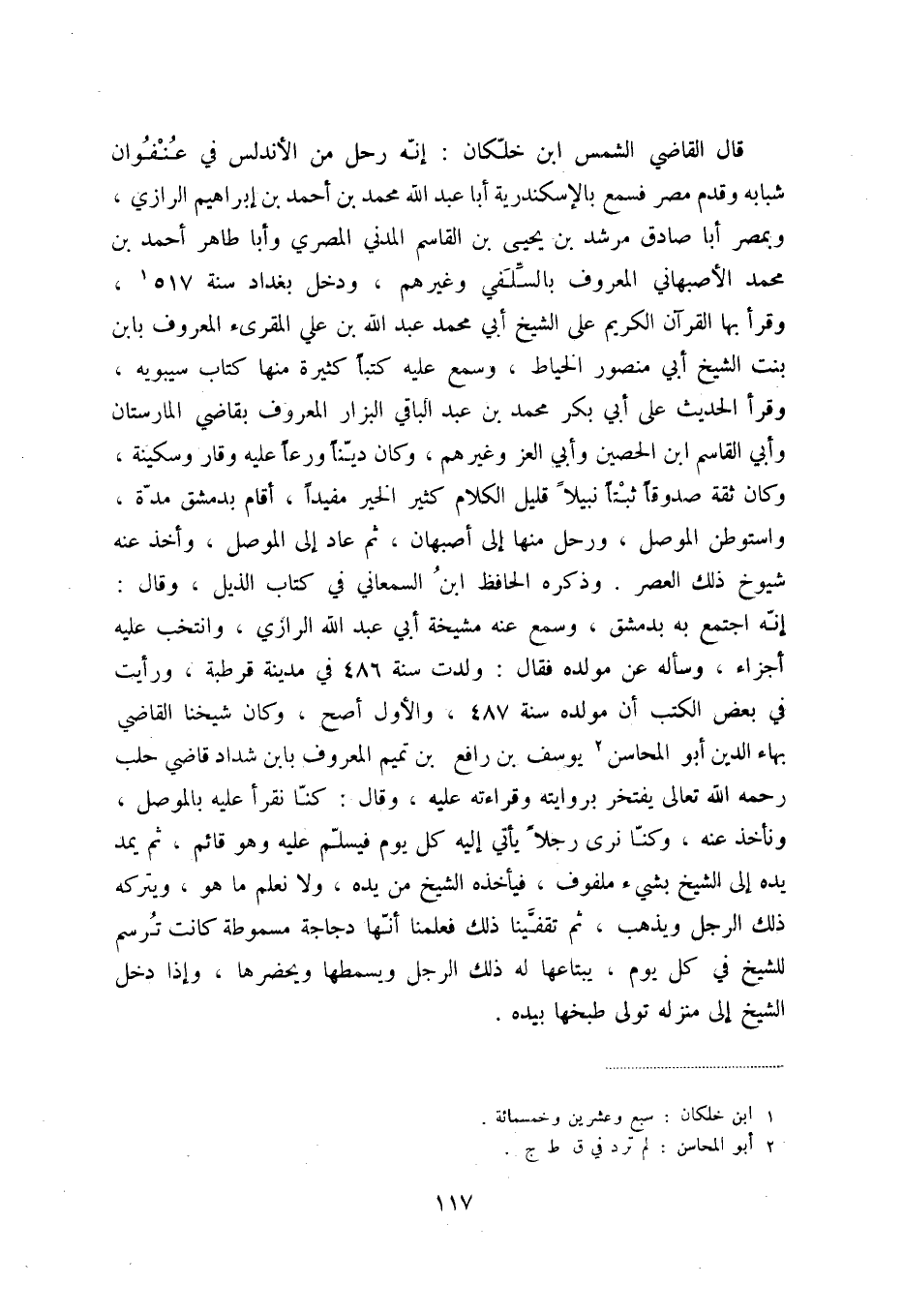 (1) ابن خلكان: سبع وعشرين وخمسمائة.