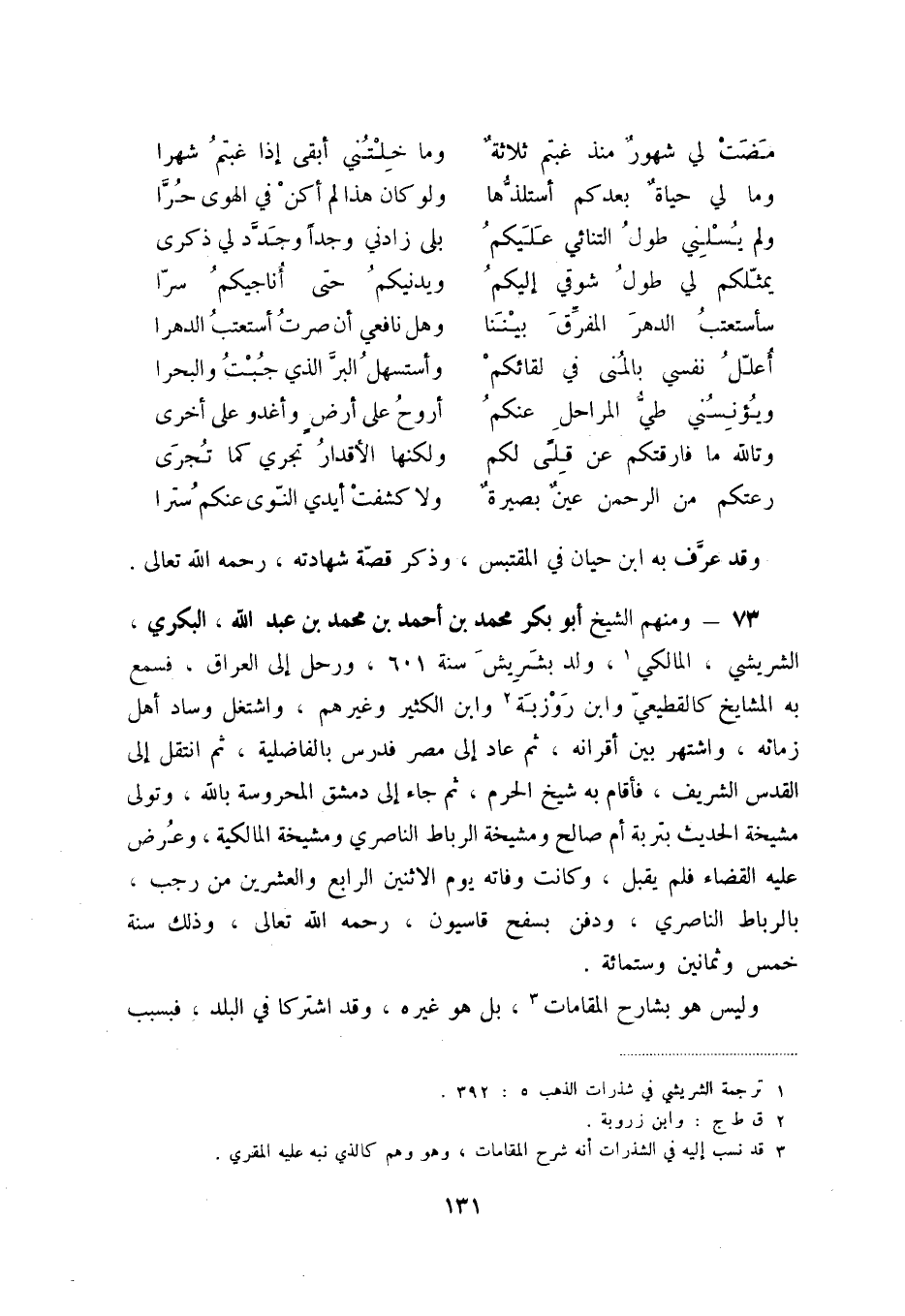 (3) قد نسب إليه في الشذرات أنه شرح المقامات، وهو وهم كالذي نبه عليه المقري.