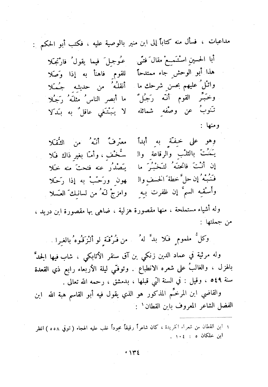 (1) ابن القطان من شعراء الخريدة، كان شاعرا رقيقا مجودا غلب عليه الهجاء (توفي 558) انظر ابن خلكان 5: 104.