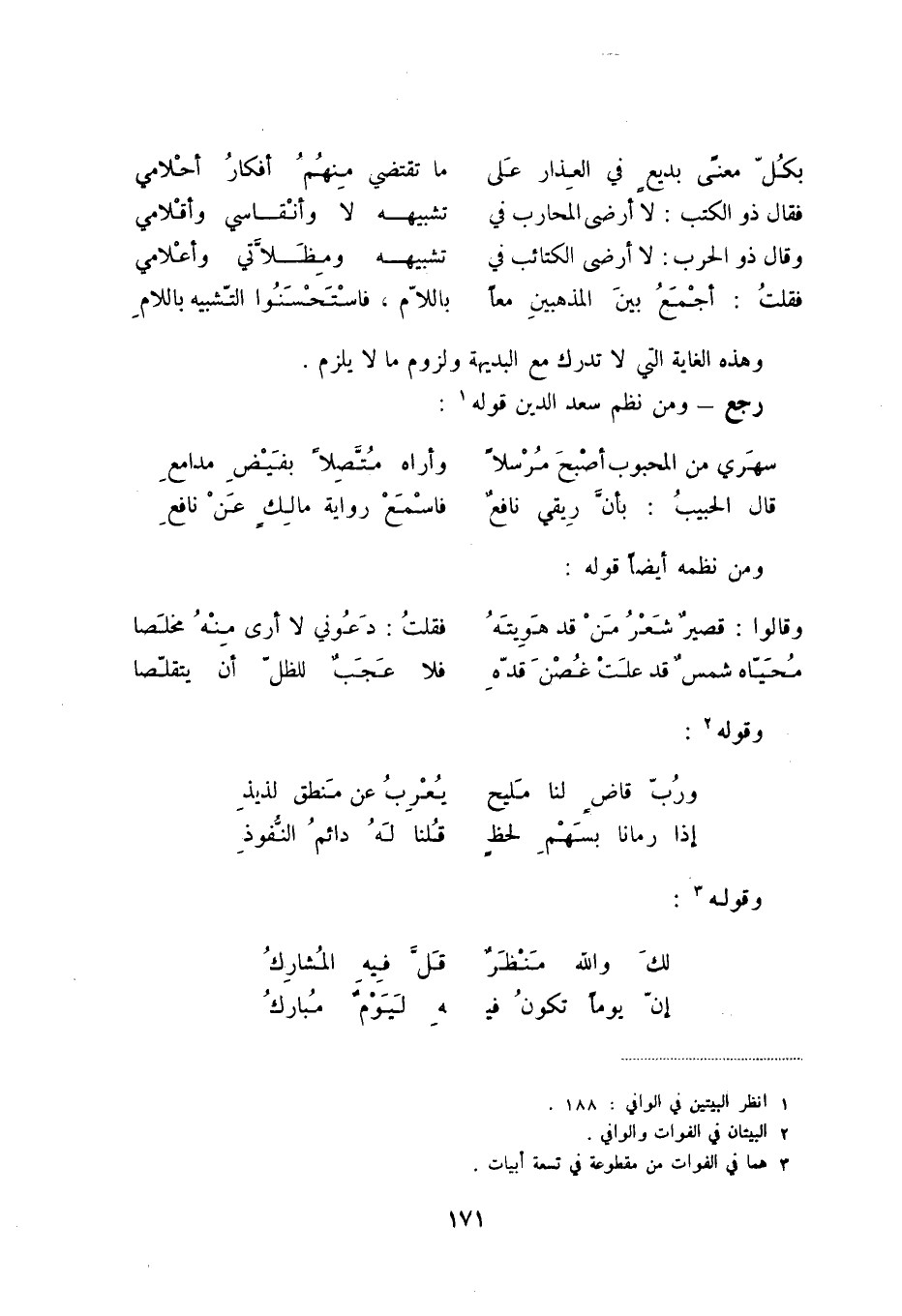 رجع - ومن نظم سعد الدين قوله (1) :