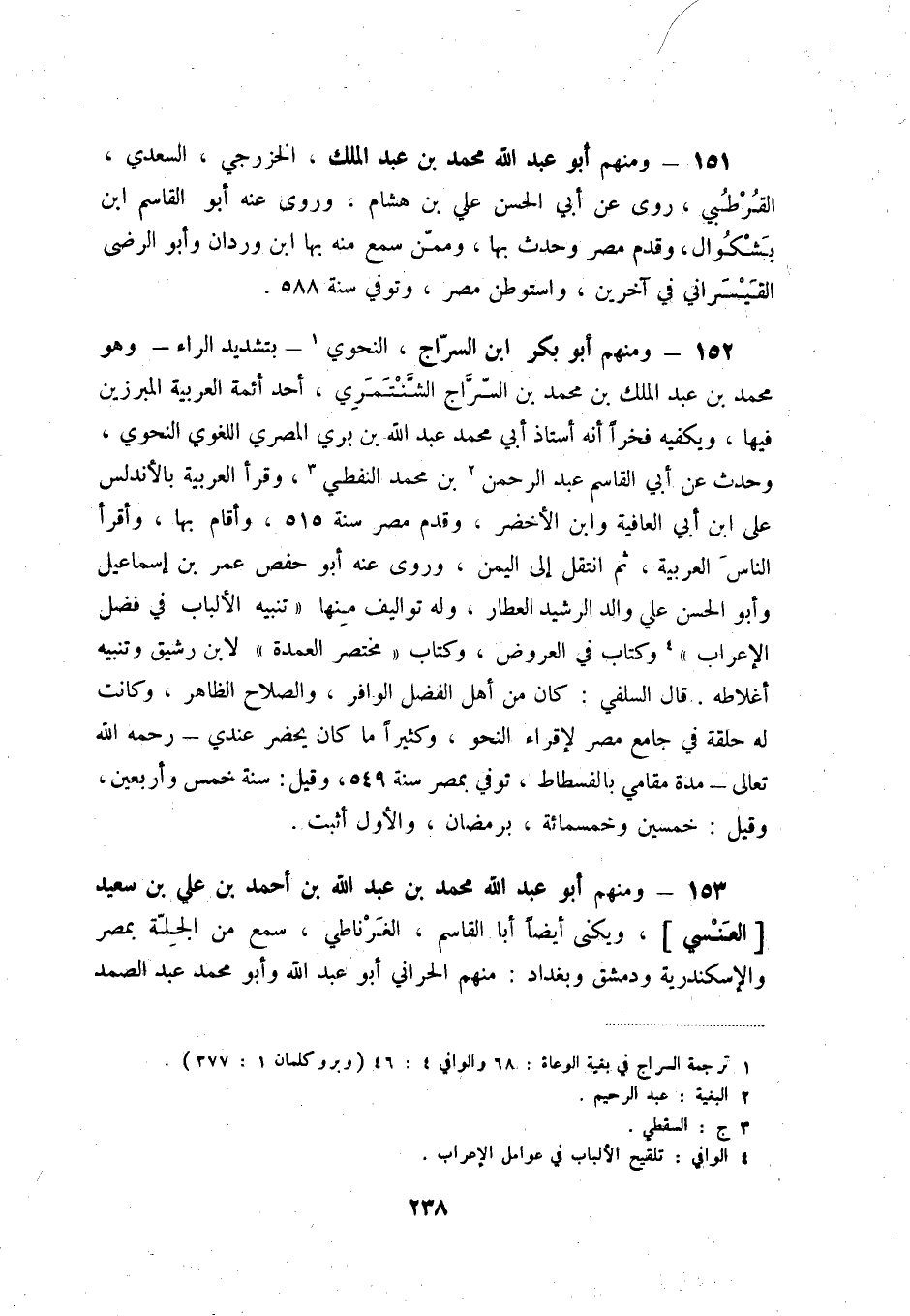(1) ترجمة السراج في بغية الوعاة: 68 والوافي 4: 46 (وبروكلما 1: 377) .