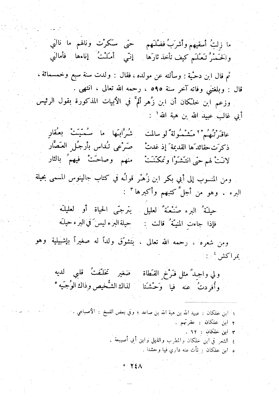 لانت لهم حتى انتشوا وتمكّنت ... منهم وصاحت فيهم بالثار ومن المنسوب إلى أبي بكر ابن زهر قوله في كتاب جالينوس المسمى بحيلة البرء، وهو من أجلّ كتبهم وأكبرها (3) :