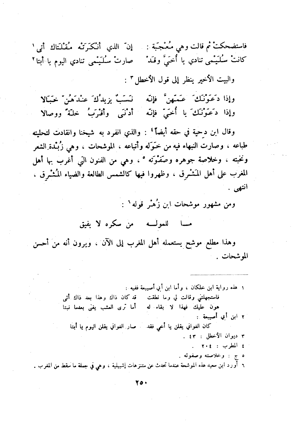 وإذا دعونك يا أخيّ فإنّه ... أدنى وأقرب خلّةً ووصالا وقال ابن دحية في حقه أيضاً (4) : والذي انفرد به شيخنا وانقادت لتحليته طباعه، وصارت النبهاء فيه من خوله وأتباعه، الموشحات، وهي زبدة الشعر ونخبته، وخلاصة جوهره وصفوته (5) ، وهي من الفنون التي أغرب بها أهل المغرب على أهل المشرق، وظهروا فيها كالشمس الطالعة والضياء المشرق، انتهى.