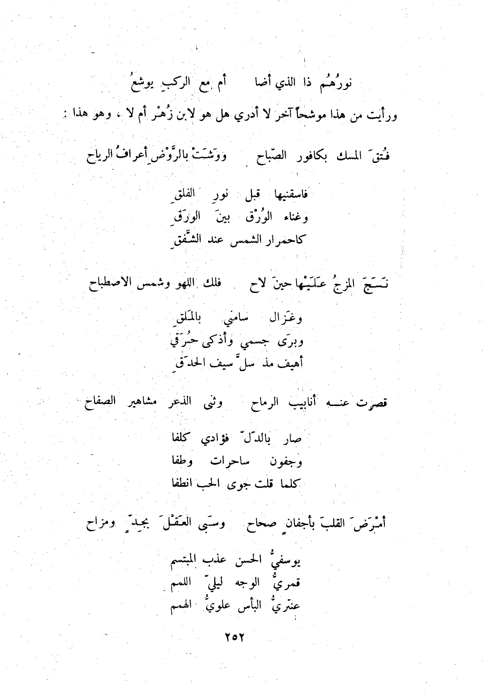 نورهم ذا الذي أضا ... أم مع الركب يوشع ورأيت من هذا موشحاً آخر لا أدري هل هو لابن زهر أم لا، وهو هذا:
