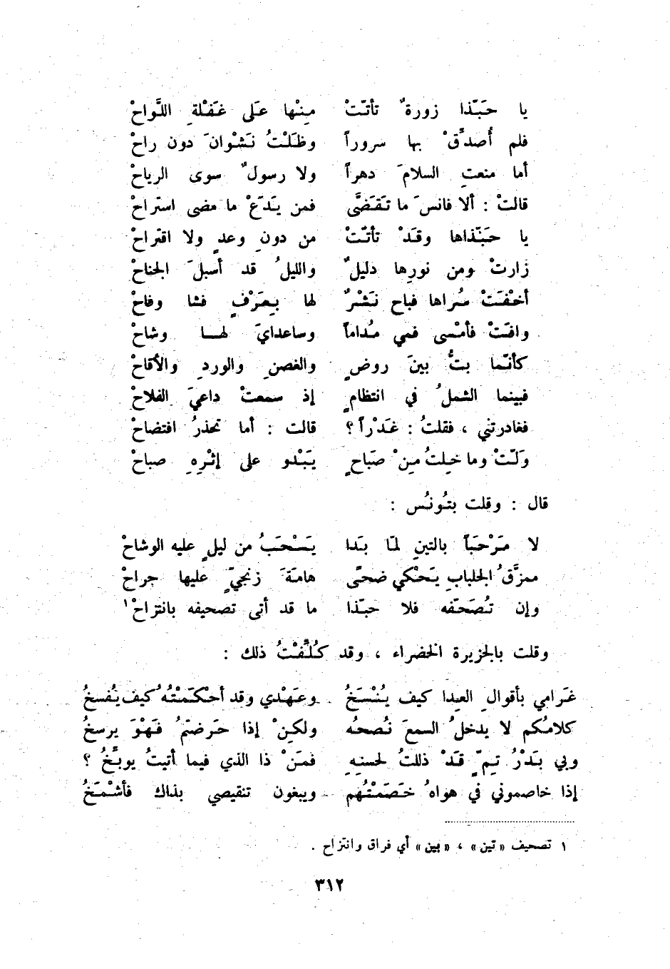 ولّت وما خلت من صباحٍ ... يبدو على إثره صباح قال: وقلت بتونس: