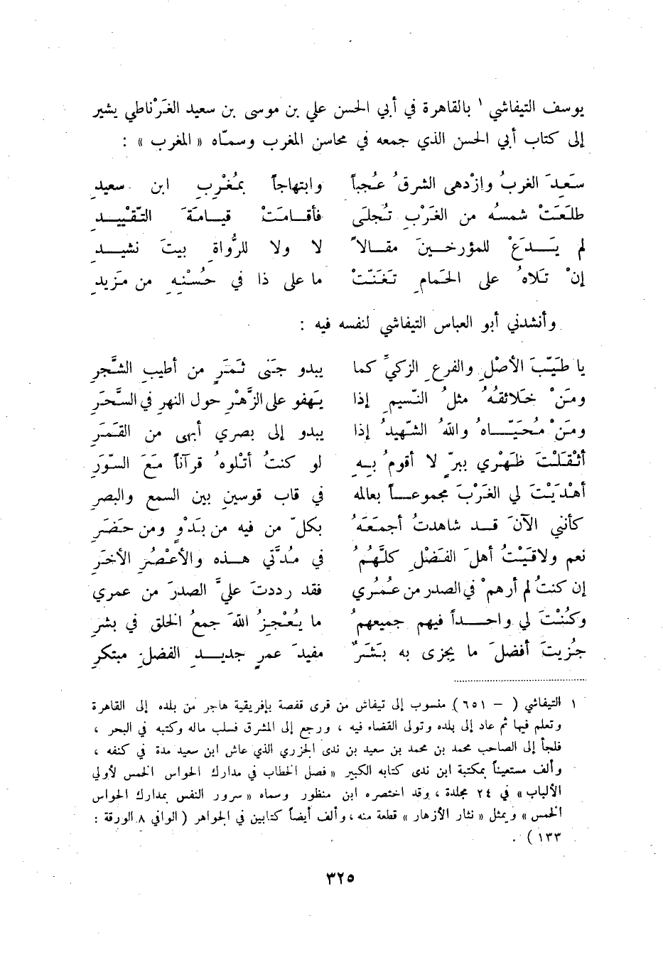 يوسف التيفاشي (1) بالقاهرة في أبي الحسن علي بن موسى بن سعيد الغرناطي يشير إلى كتاب أبي الحسن الذي جمعه من محاسن المغرب وسمّاه " المغرب ":