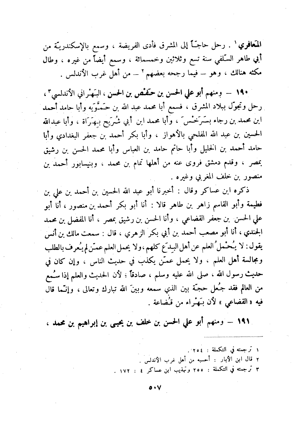 191 - ومنهم أبو علي الحسن بن خلف بن يحيى بن إبراهيم بن محمد،
