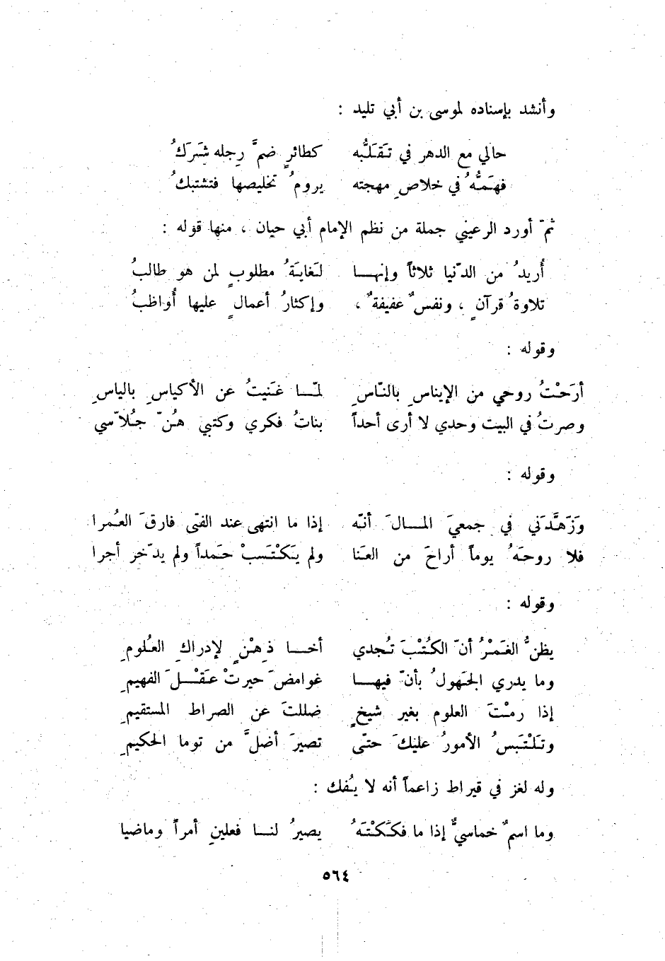 ثم أورد الرعيني جملة من نظم الإمام أبي حيان، منها قوله: