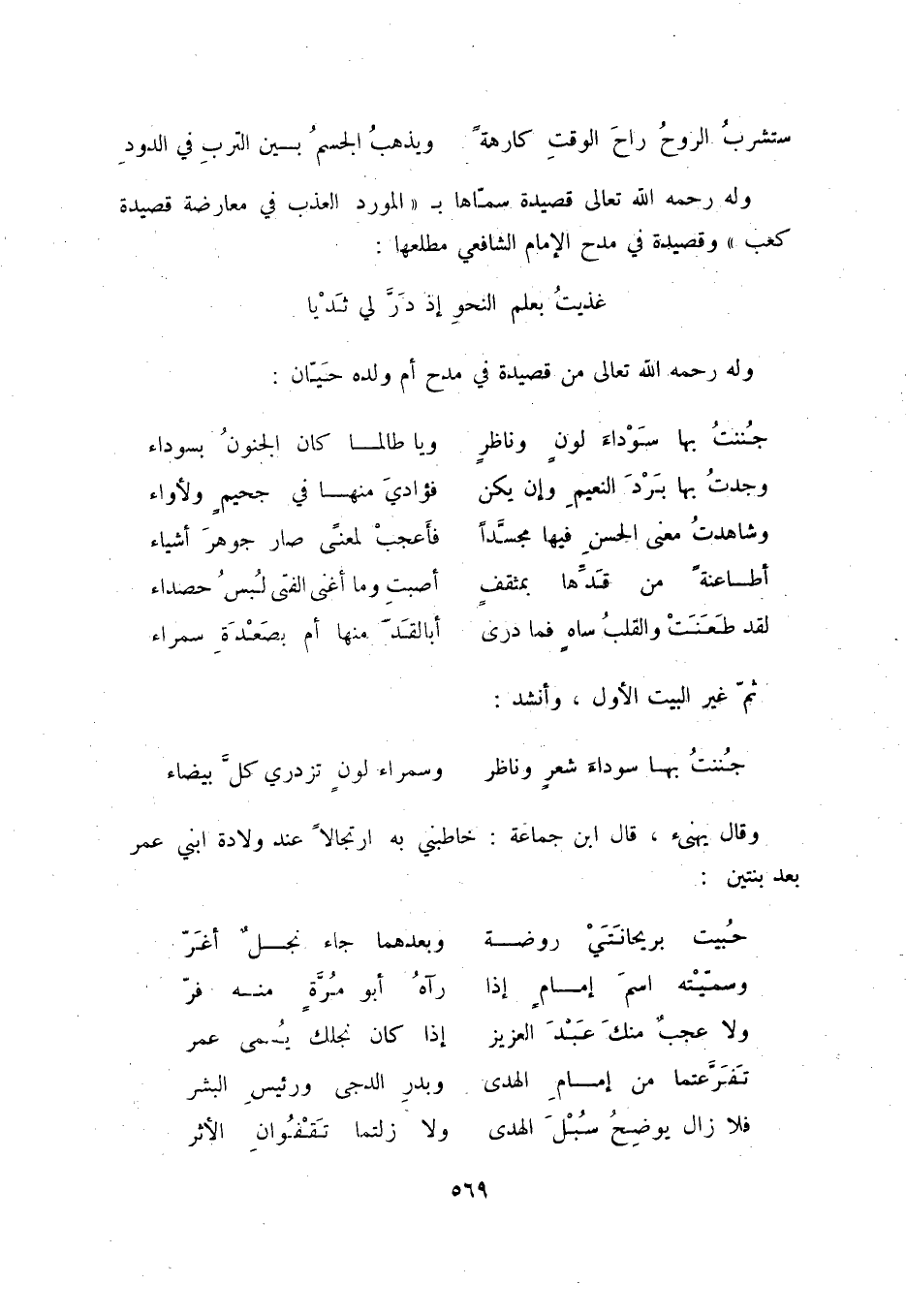 وله رحمه الله تعالى قصيدة سمّاها بالمورد العذب في معرضة قصيدة كعب وقصيدة في مدح الإمام الشافعي مطلعها: