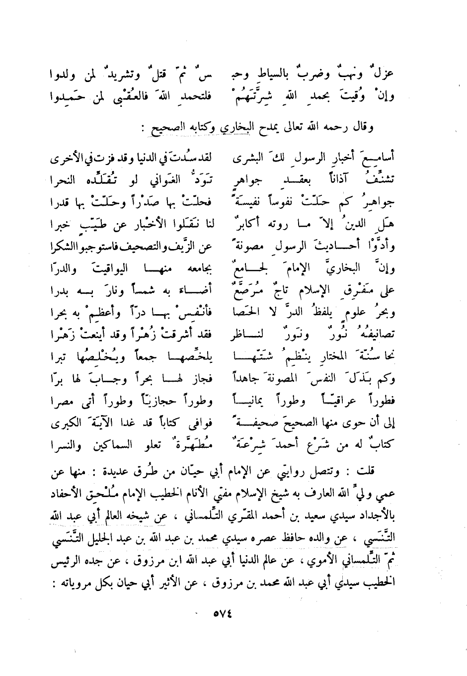 وإنّ البخاريّ الإمام لجامعٌ بجامعه منها اليواقيت والدرّا
