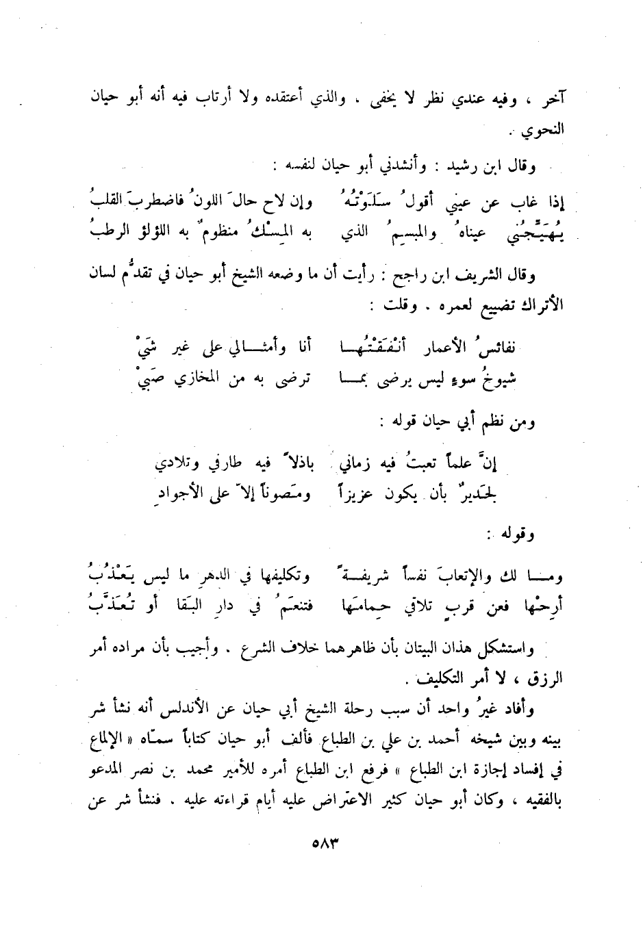 وقال ابن رشيد: وأنشدني أبو حيان لنفسه: