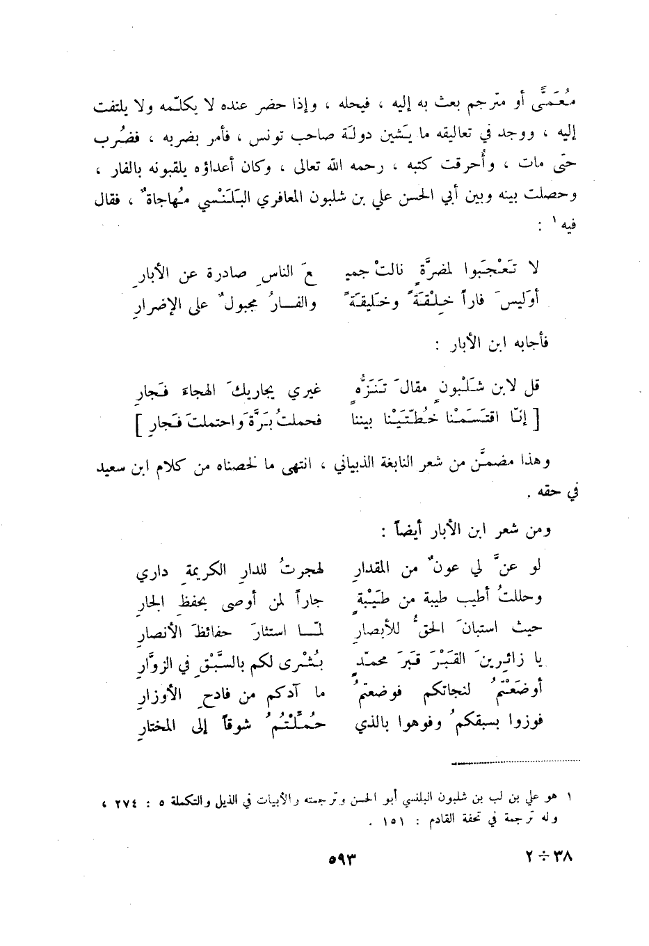 (1) هو علي بن لب بن شلبون البلنسي أبو الحسن وترجمته والأبيات في الذيل والتكملة 5: 274، وله ترجمة في تحفة القادم: 151.
