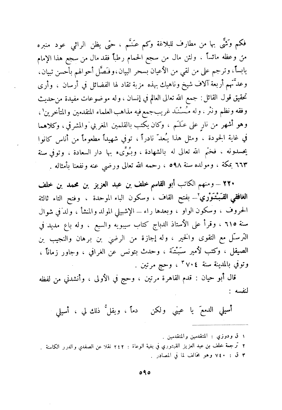 (2) ترجمة خلف بن عبد العزيز القبتوري في بغية الوعاة: 242 نقلا عن الصفدي والدرر الكامنة.