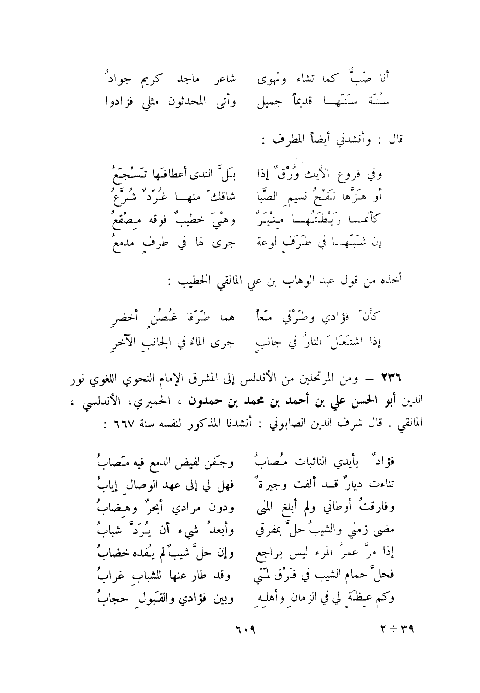 سنّة سنّها قديماً جميل وأتى المحدثون مثلي فزادوا
