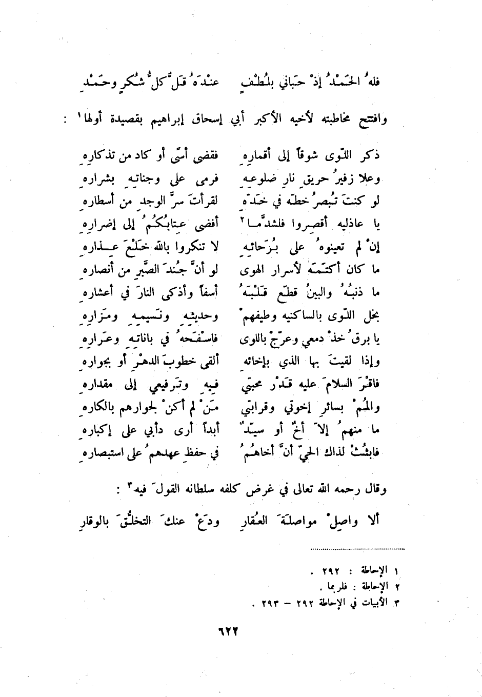 وافتتح مخاطبته لأخيه الأكبر أي إسحاق إبراهيم بقصيدة أولها (1) :