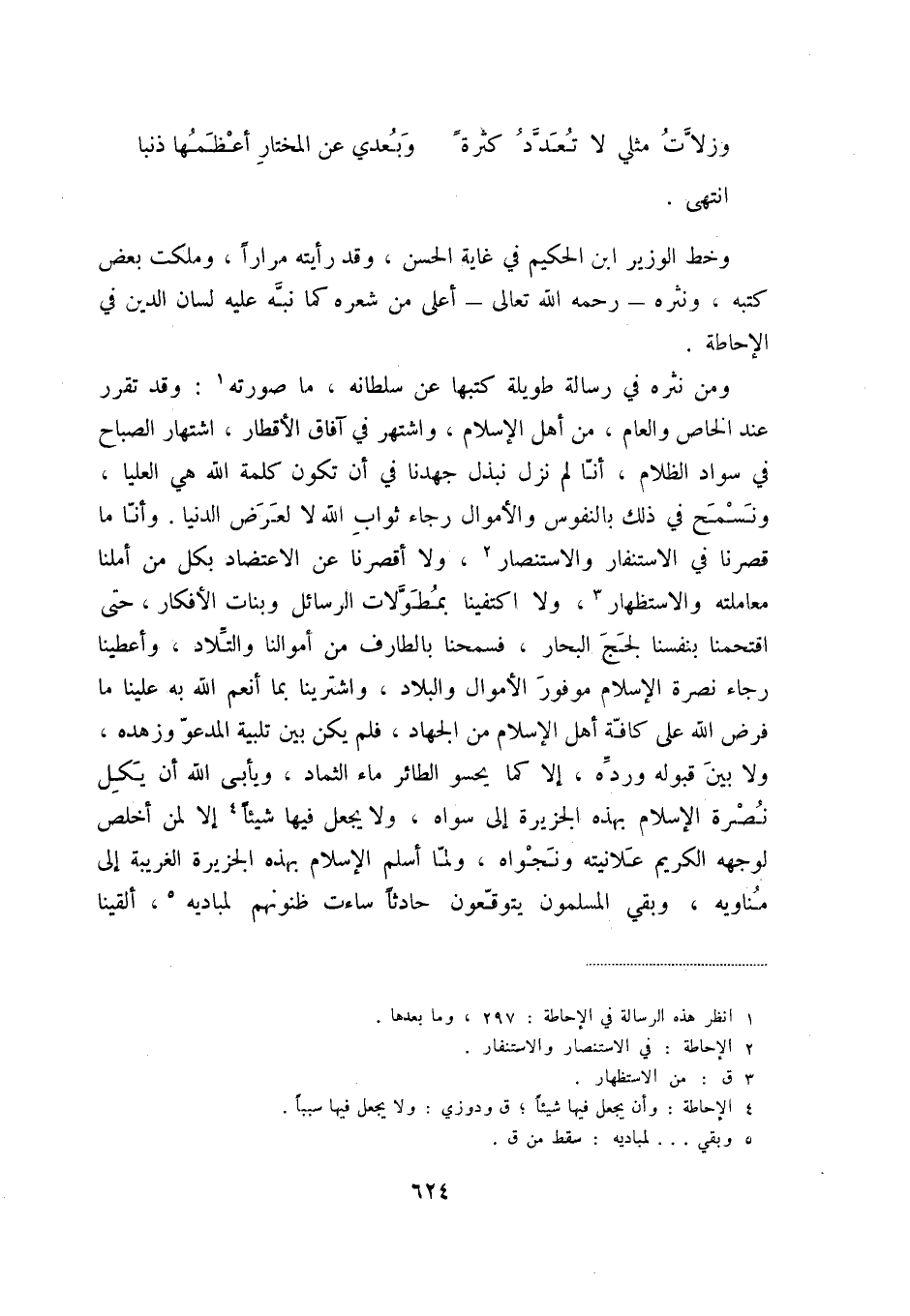 (1) انظر هذه الرسالة في الإحاطة: 297، وما بعدها.