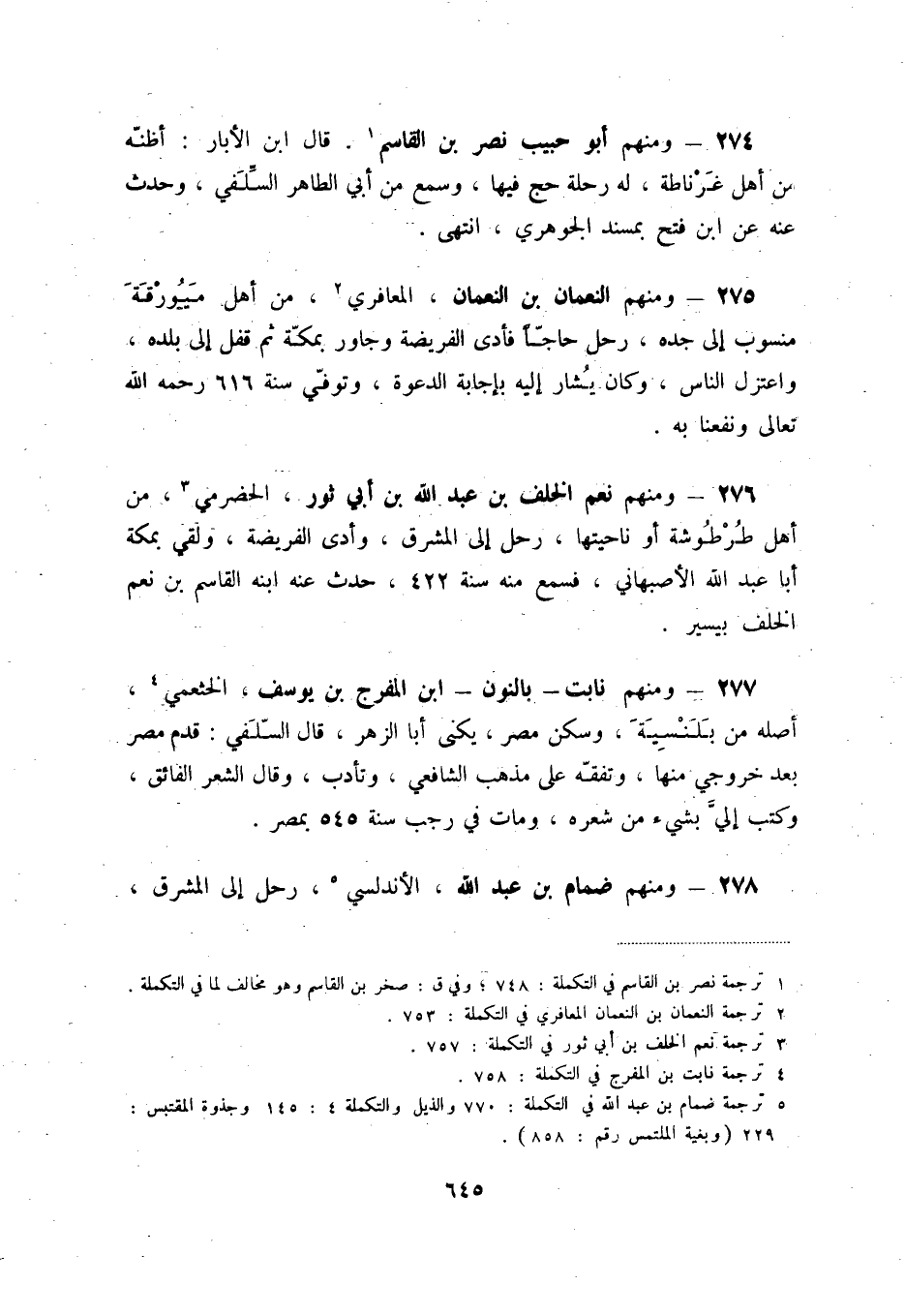 278 - ومنهم ضمام بن عبد الله الأندلسي (5) ، رحل إلى المشرق،