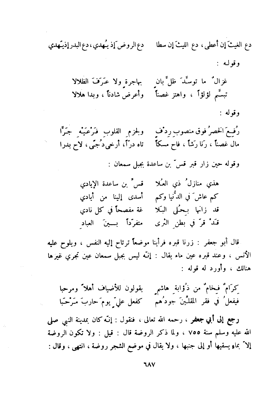 وقوله حين زار قبر قسّ بن ساعدة بجبل سمعان: