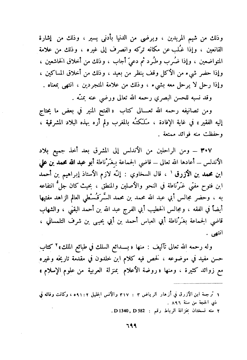 (1) ترجمة ابن الأزرق في أزهار الرياض 3: 317 والأنس الجليل 2: 591، وكانت وفاته في ذي الحجة من سنة 896.