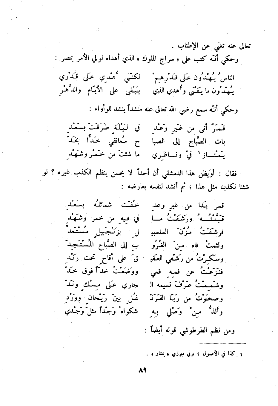 وألذّ من وصلي به ... شكواه وجداً مثل وجدي ومن نظم الطرطوشي قوله أيضاً: