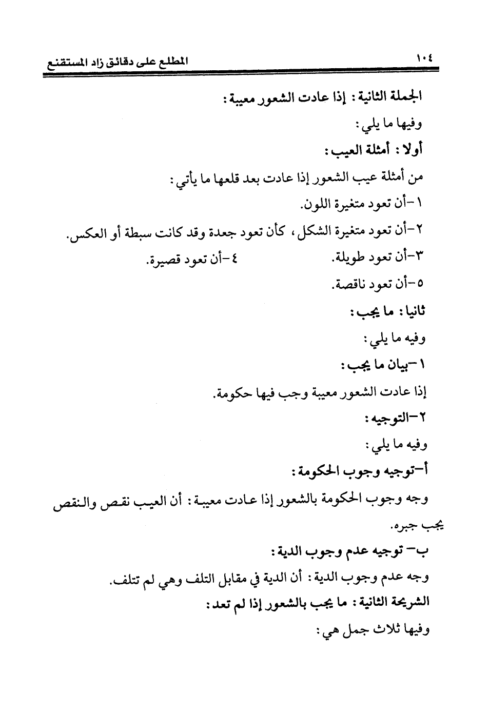 إذا عادت الشعور معيبة وجب فيها حكومة.