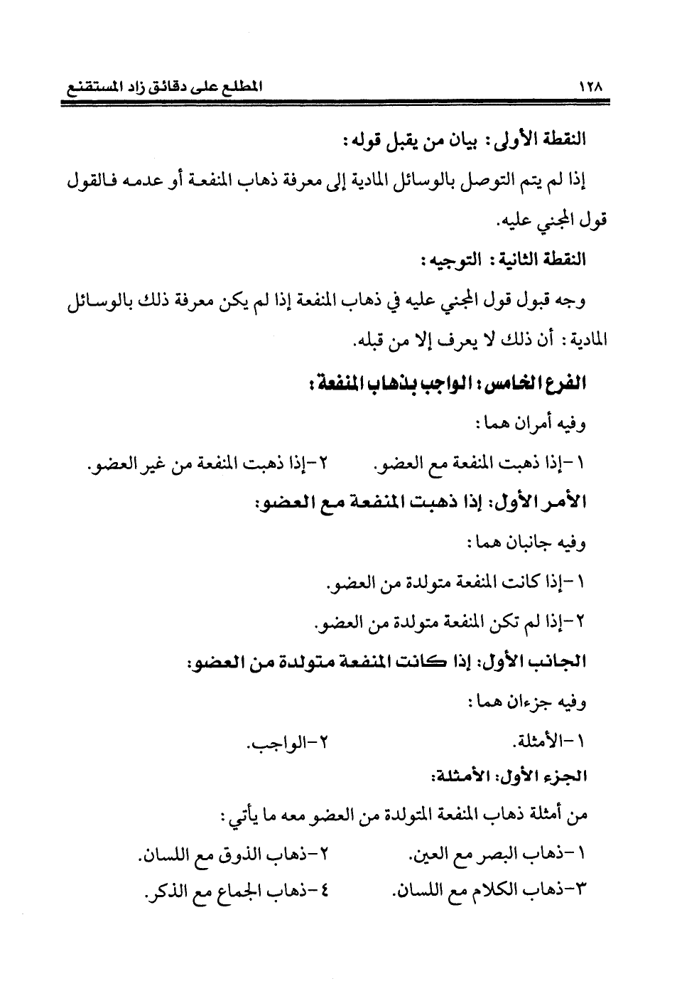 الفرع لخامس: الواجب بذهاب المنفعة: