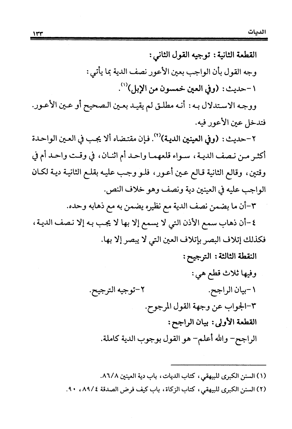 (¬1) السنن الكبرى للبيهقي، كتاب الديات، باب دية العينين 8/ 86.