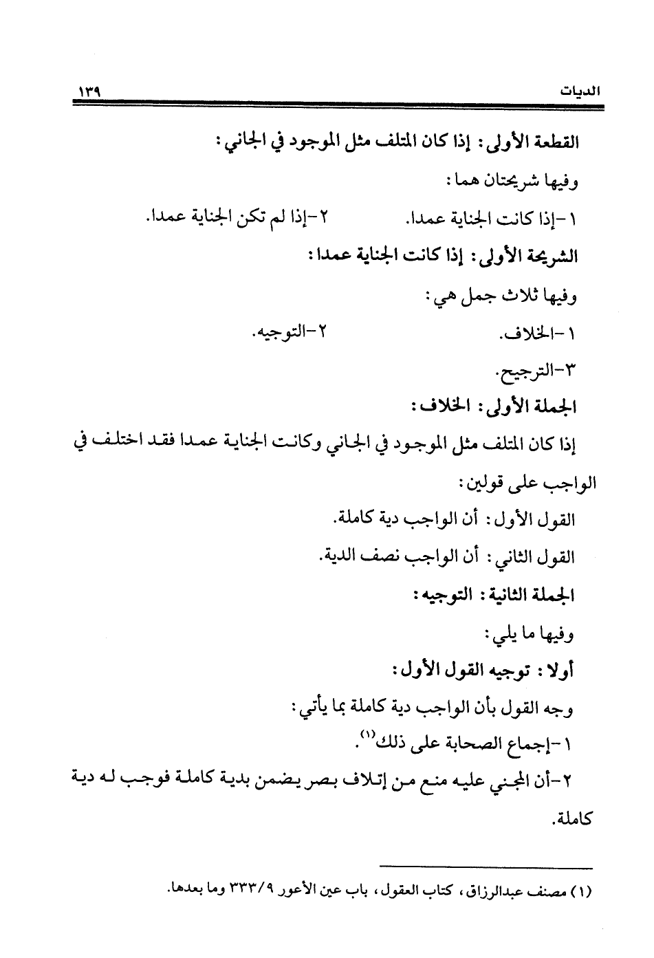 (¬1) مصنف عبد الرزاق، كتاب العقول، باب عين الأعور 9/ 333 وما بعدها.