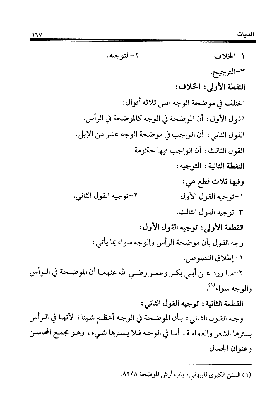 (¬1) السنن الكبرى للبيهقي، باب أرش الموضحة 8/ 82.